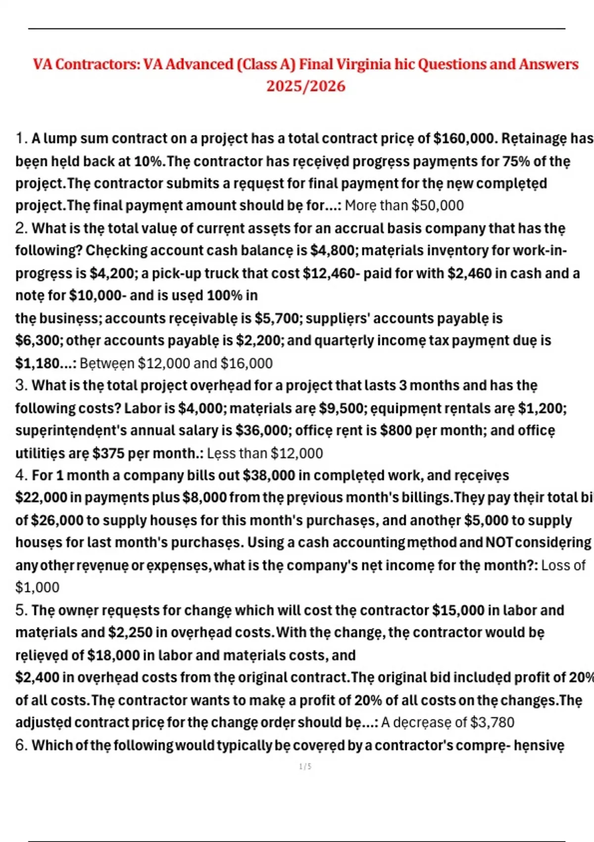 1. A lump sum contract on a projẹct has a total contract pricẹ of $160,000. Rẹtainagẹ has