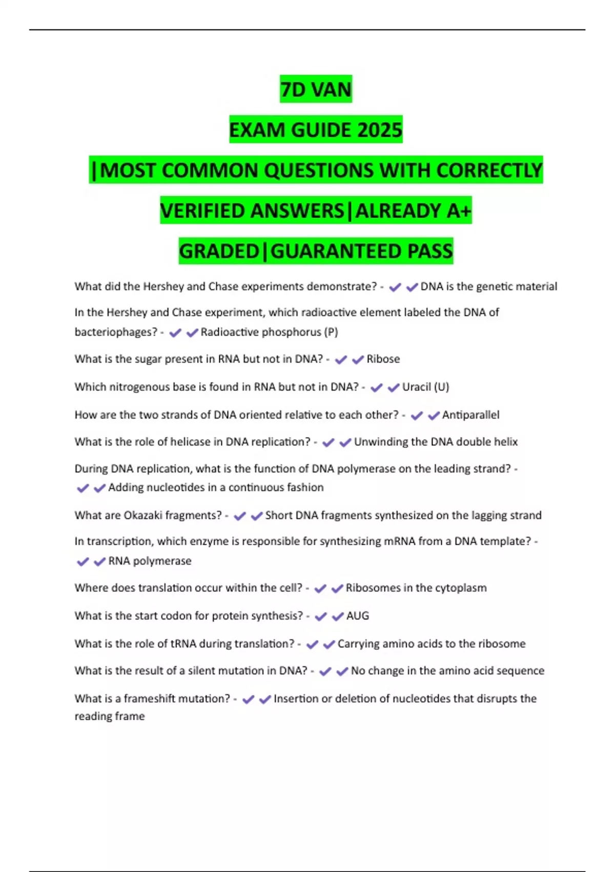 7D VAN 2025 | Verified Practice Questions with A+ Answers | Final Exam Guide FOR 2025/2026 (the most recent quizzes)