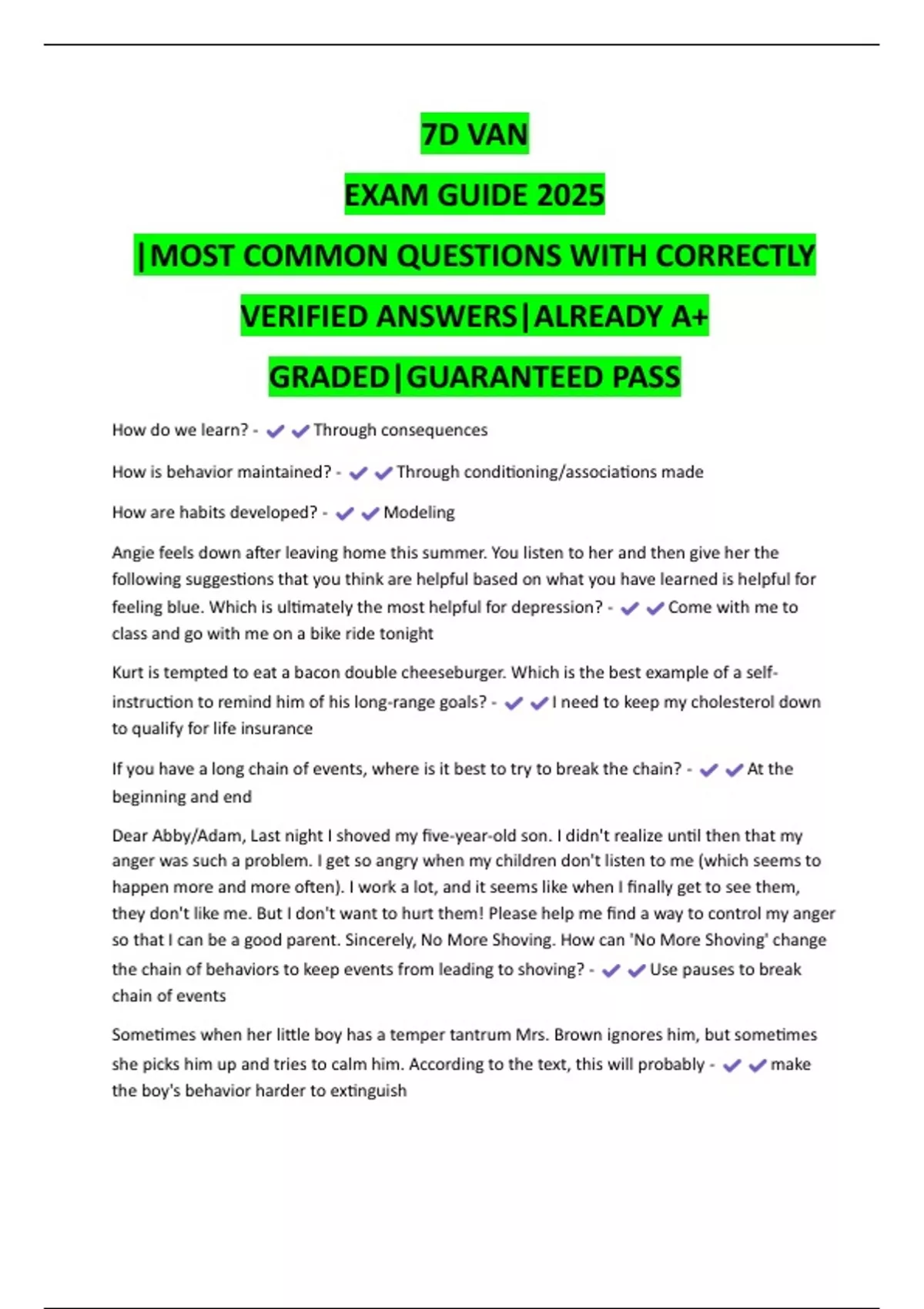 7D VAN Prep Bundle for 2025 | Full Quiz Set | Verified 100% Correct