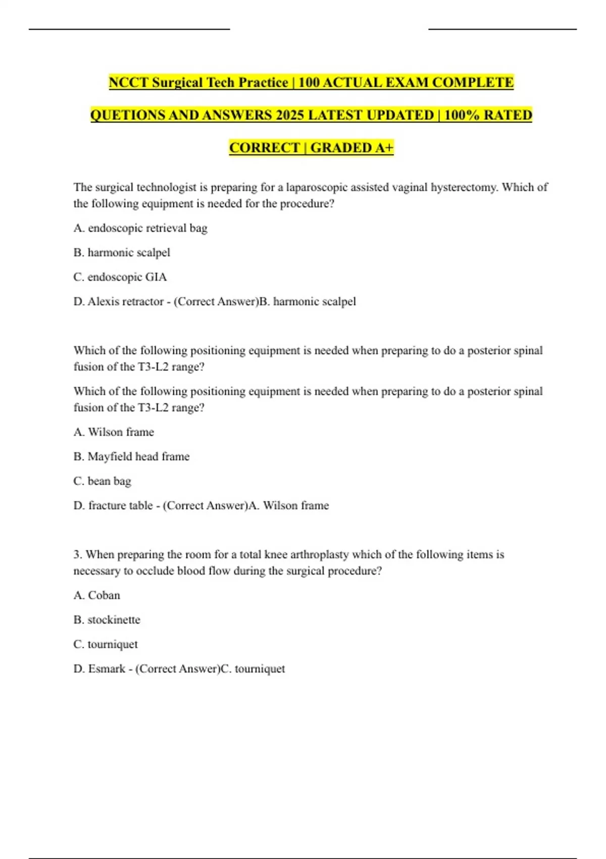 NCCT Surgical Tech Practice | 100 ACTUAL EXAM COMPLETE QUETIONS AND ANSWERS 2025 LATEST UPDATED | 100% RATED CORRECT | GRADED A+