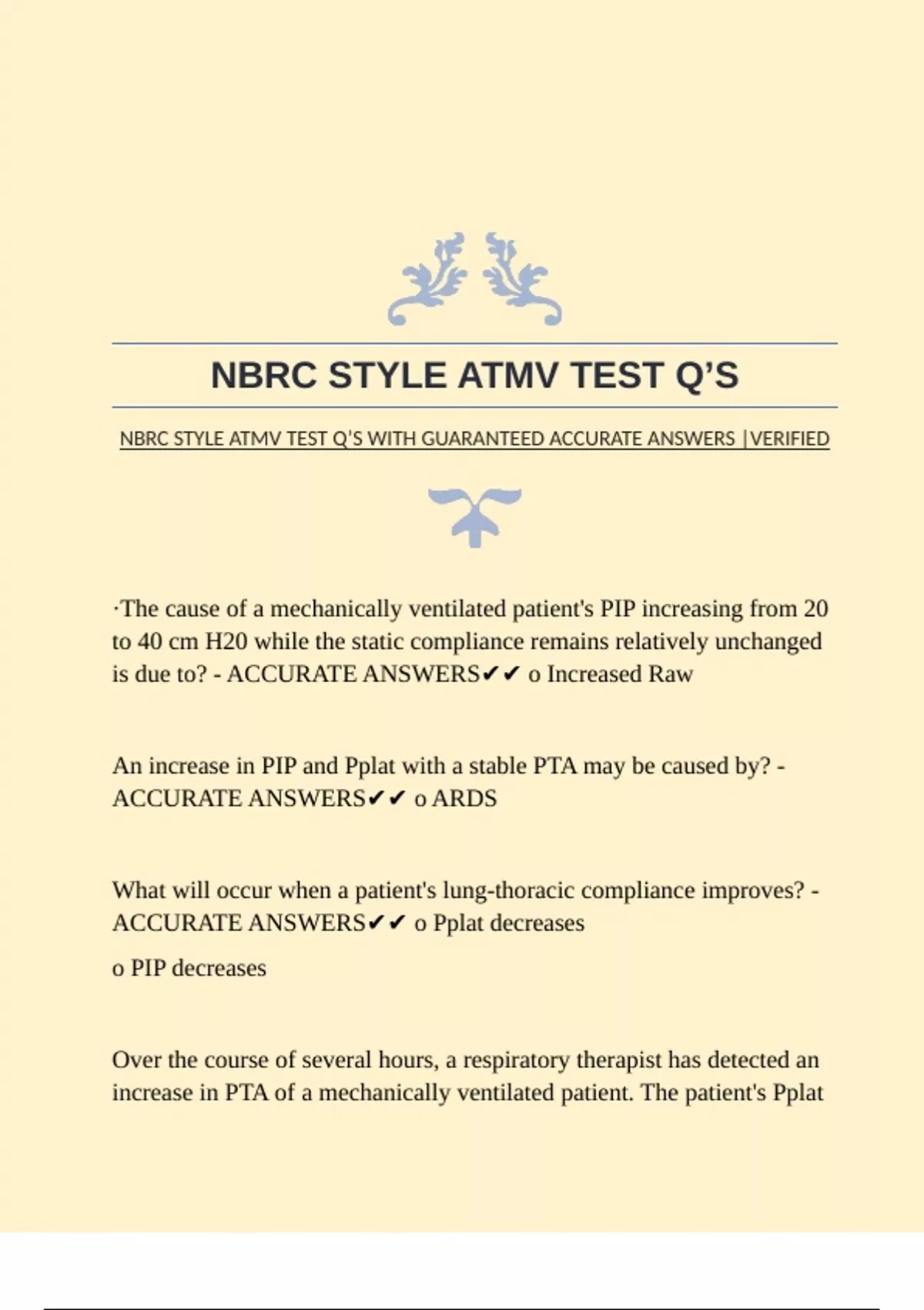 NBRC STYLE ATMV TEST Q’S WITH GUARANTEED ACCURATE ANSWERS |VERIFIED