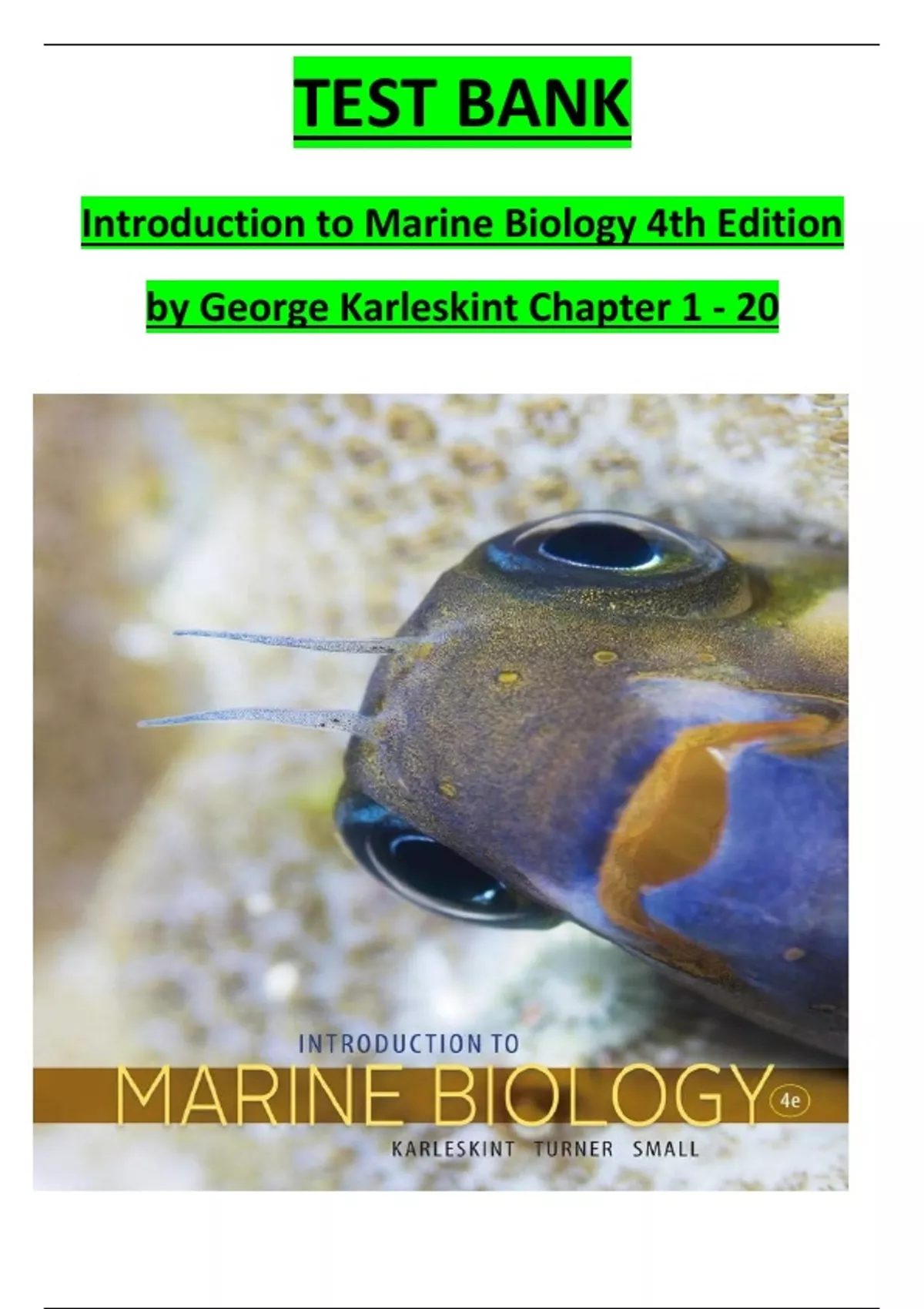 TEST BANK Introduction to Marine Biology 4th Edition by George Karleskint Chapter 1 - 20