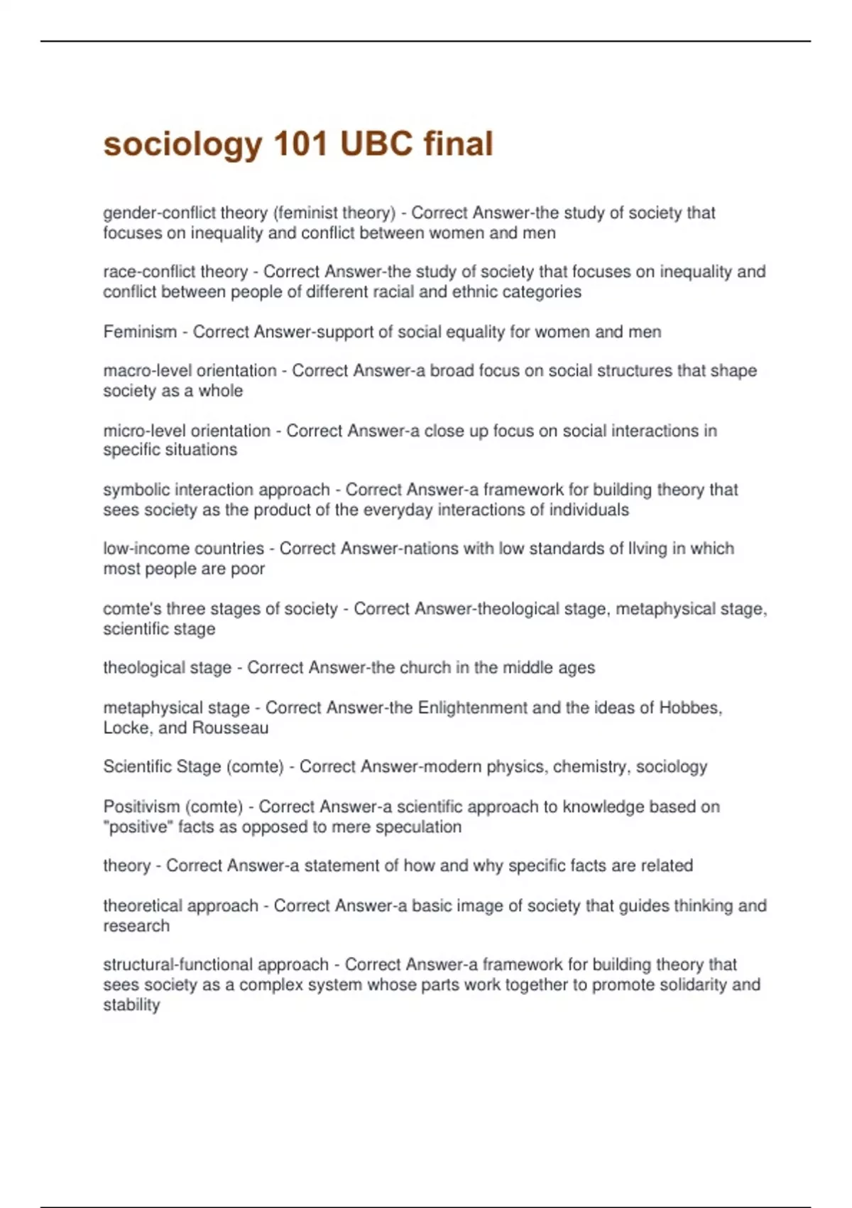 comte's three stages of society - Correct Answer-theological stage, metaphysical stage,