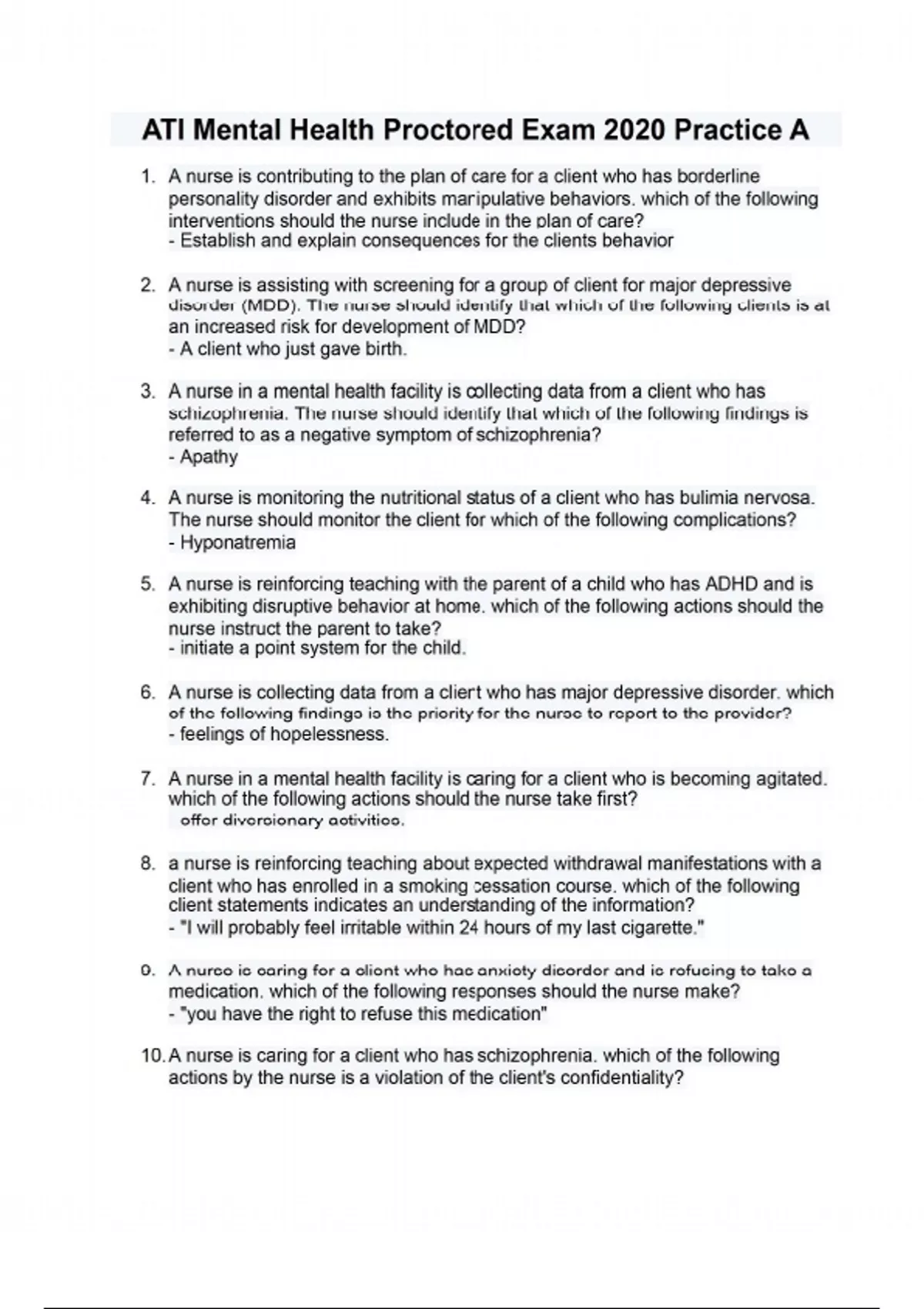 ati mental health proctored exam 2020 practice a