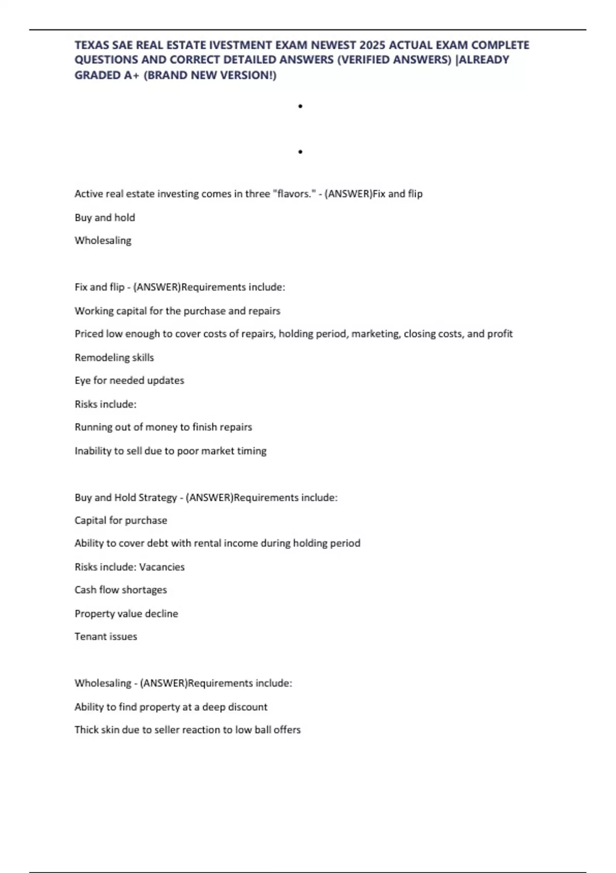 , TEXAS SAE REAL ESTATE IVESTMENT EXAM NEWEST 2025 ACTUAL EXAM COMPLETE
