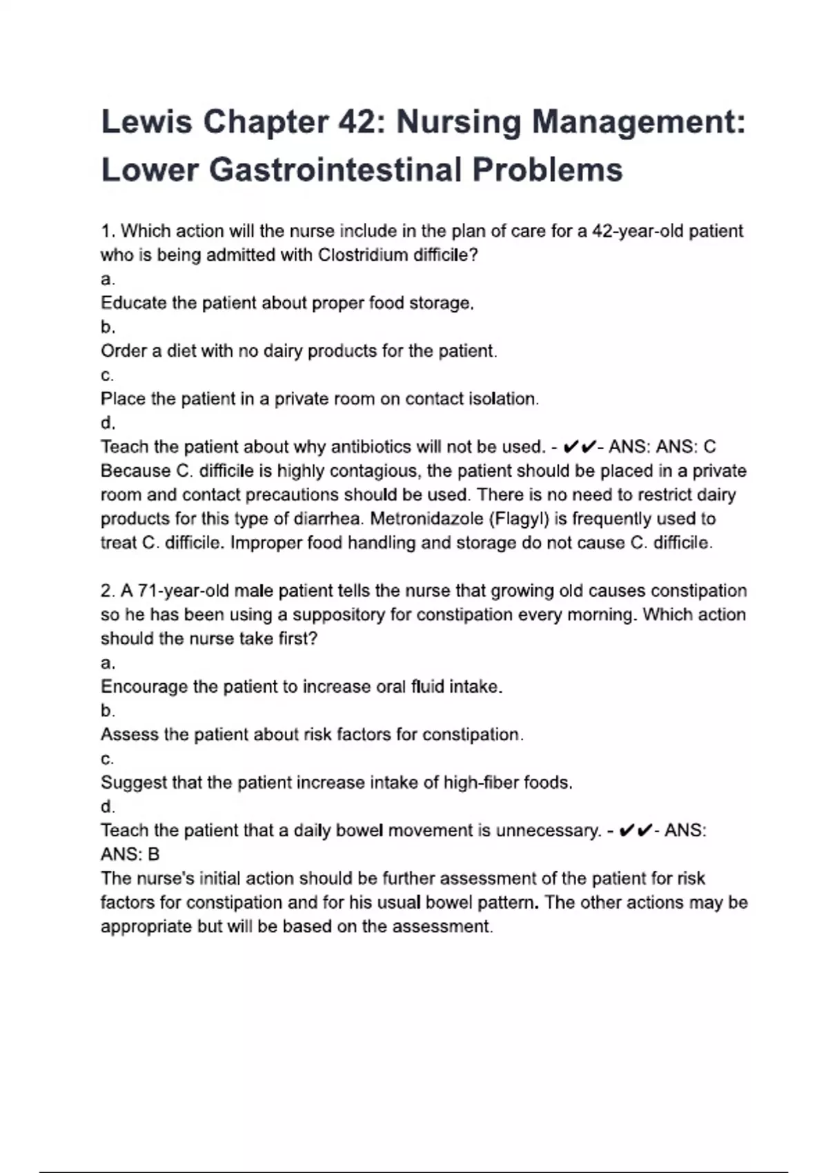 lewis chapter 42 nursing management lower gastro