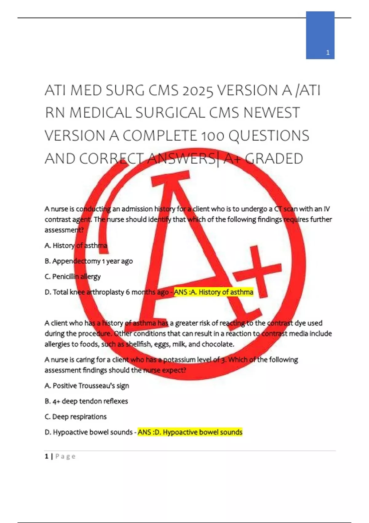 ATI MED SURG CMS 2025 VERSION A /ATI