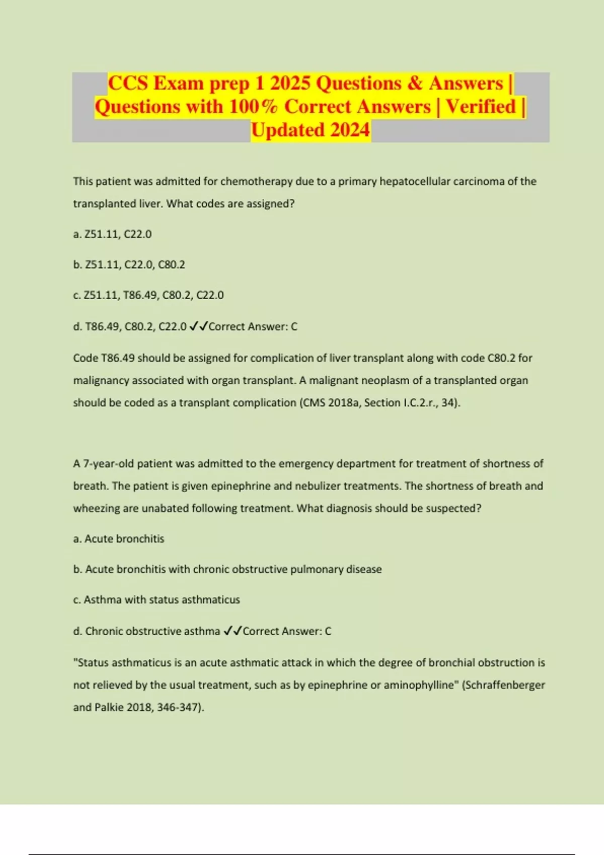 CCS Exam prep 1 2025 Questions & Answers | Questions with 100% Correct Answers | Verified | Updated 2024