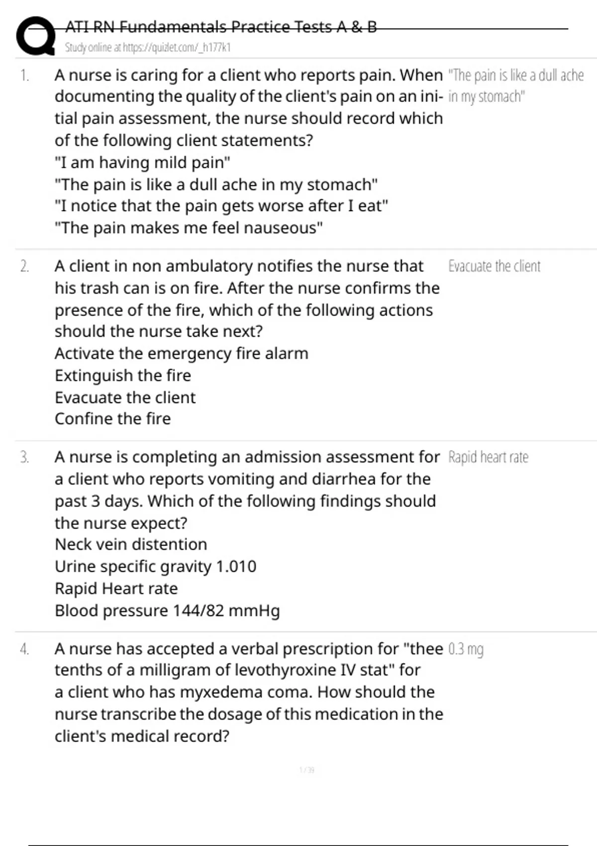 1. A nurse is caring for a client who reports pain. When "The pain is like a dull ache