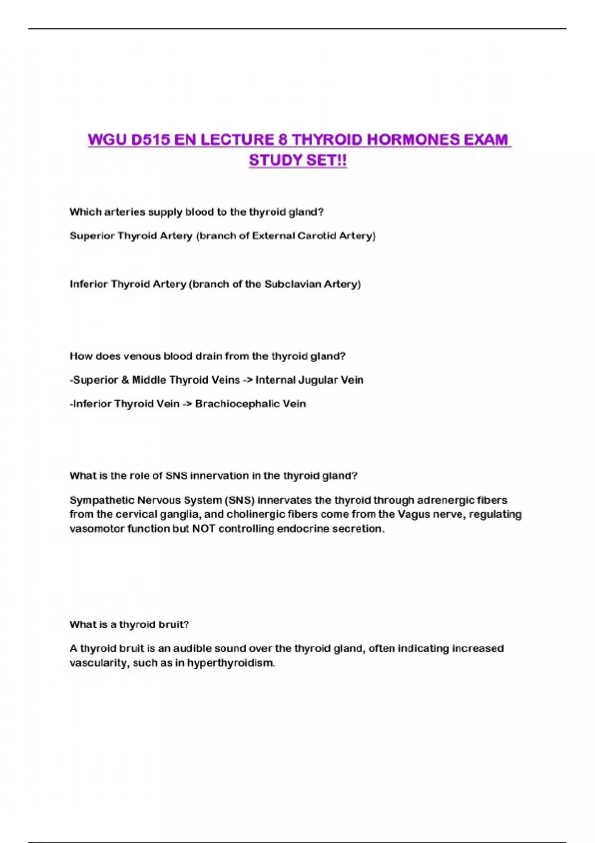 WGU D515 EN LECTURE 8 THYROID HORMONES EXAM STUDY SET!!...