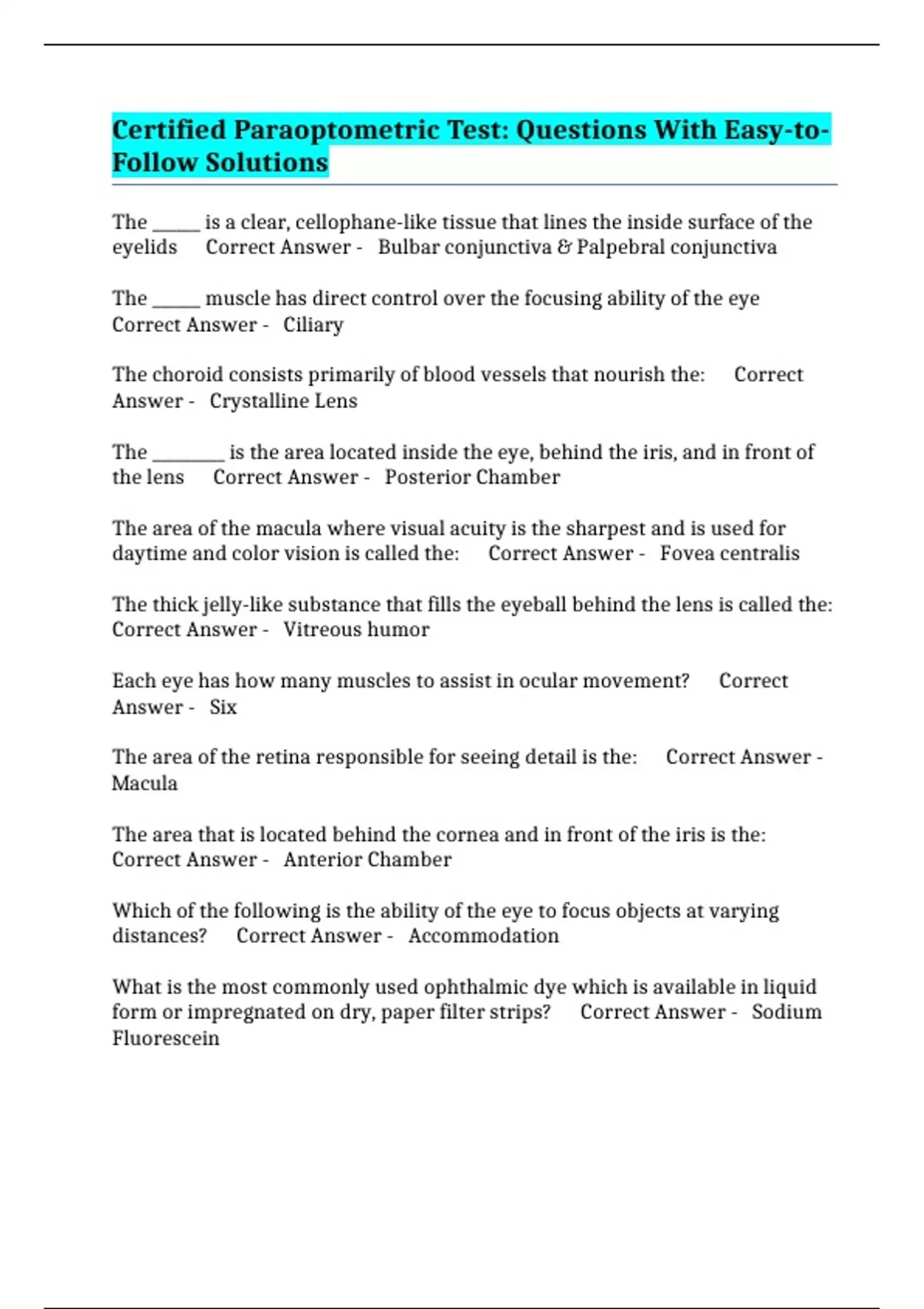 Answer - Crystalline Lens