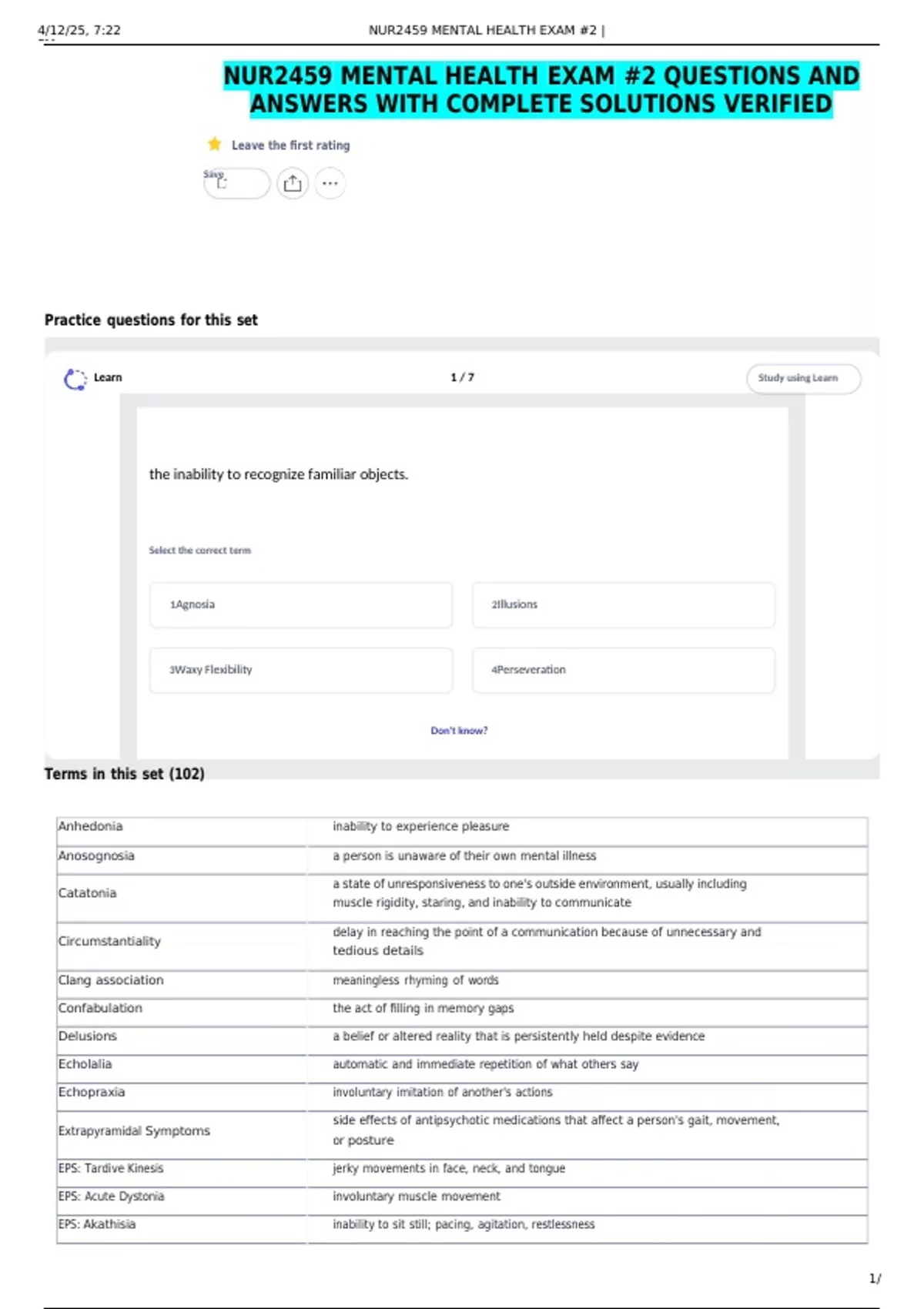 , 4/12/25, 7:22 NUR2459 MENTAL HEALTH EXAM #2 |