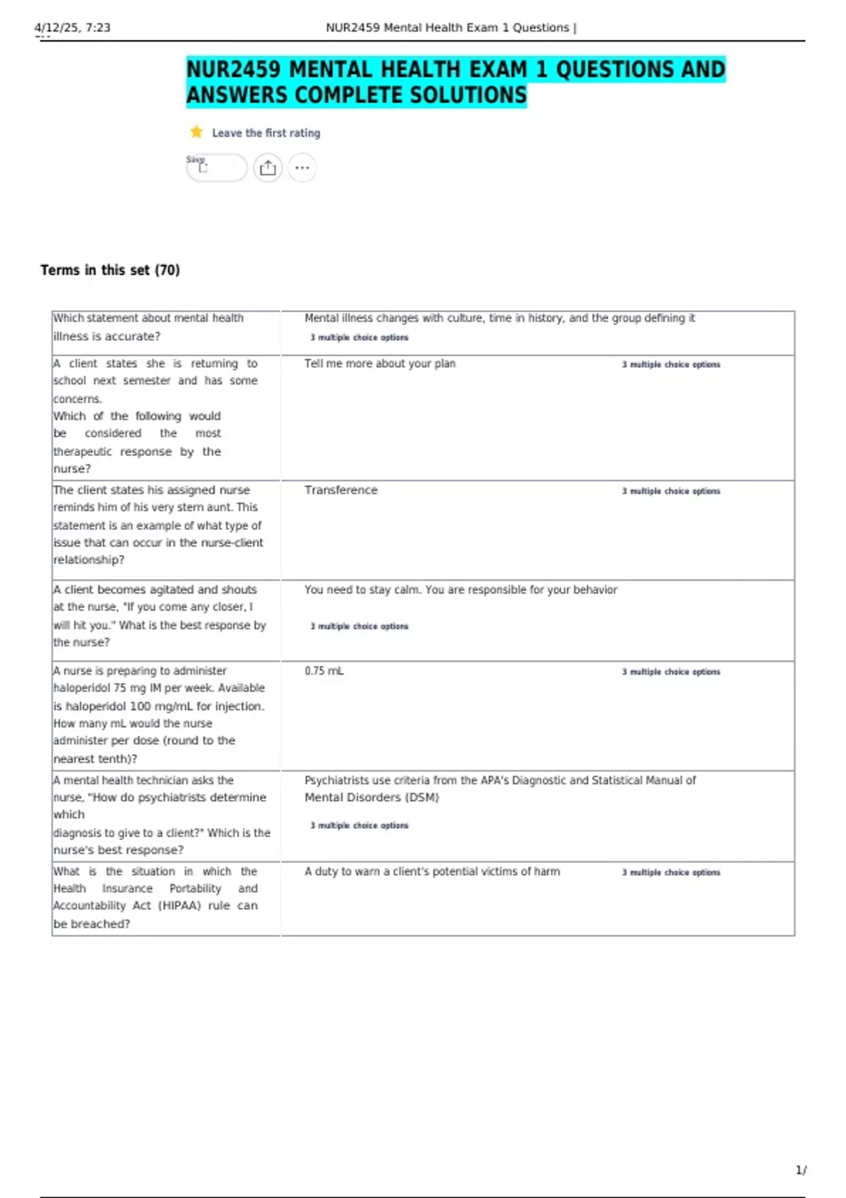 , 4/12/25, 7:23 NUR2459 Mental Health Exam 1 Questions |