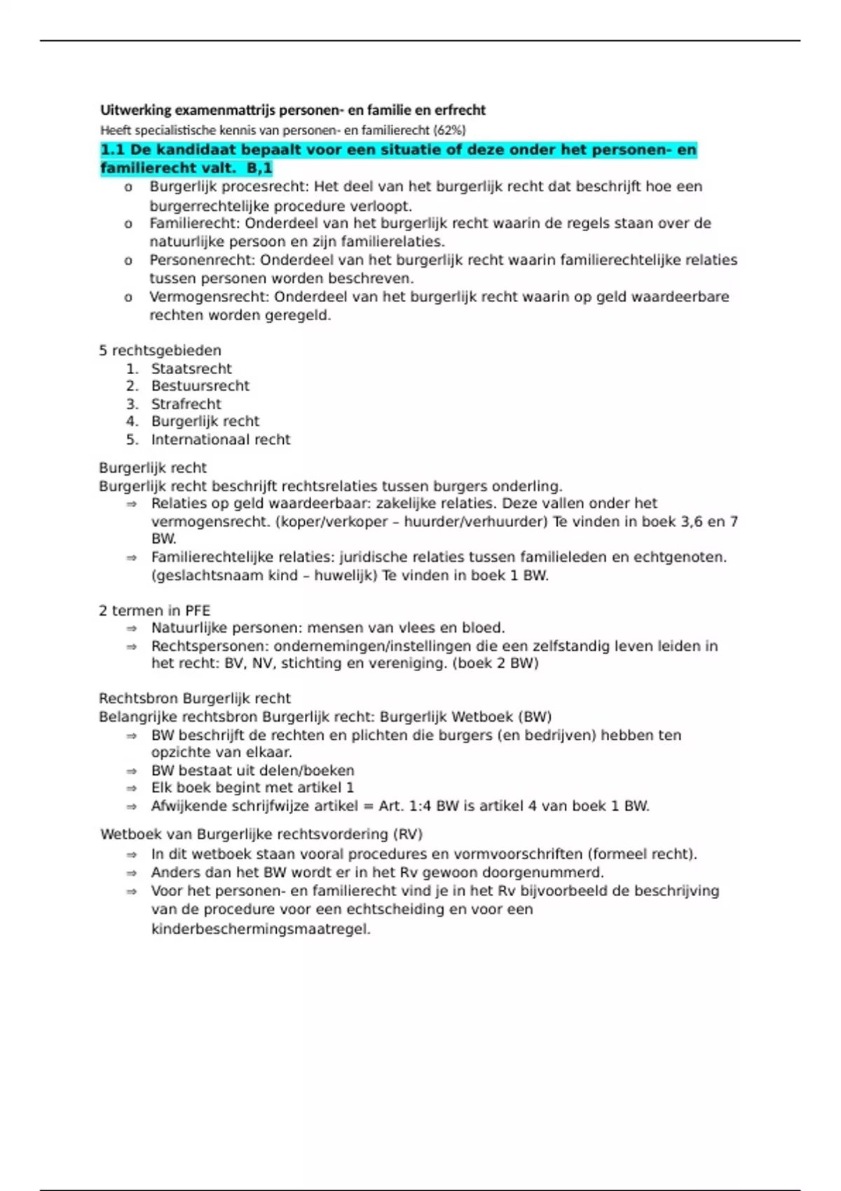 Uitwerking examenmattrijs personen- en familie en erfrecht