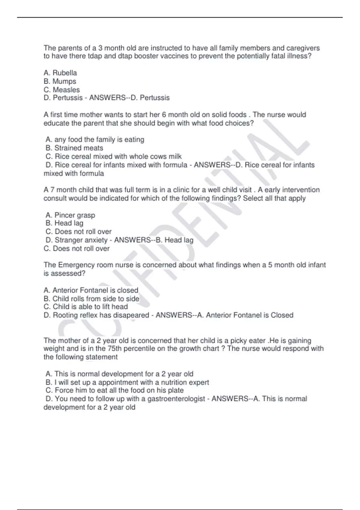 D. Stranger anxiety - ANSWERS--B. Head lag