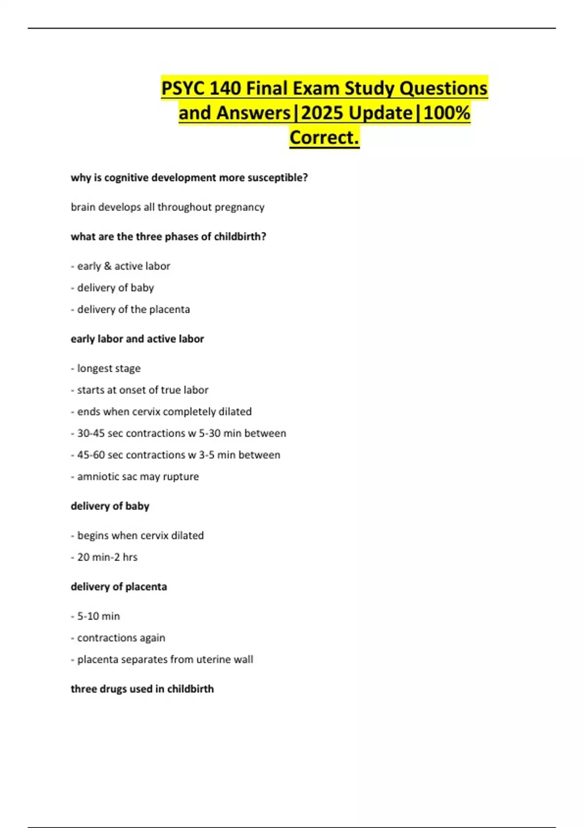 PSYC 140 Final Exam Study Questions