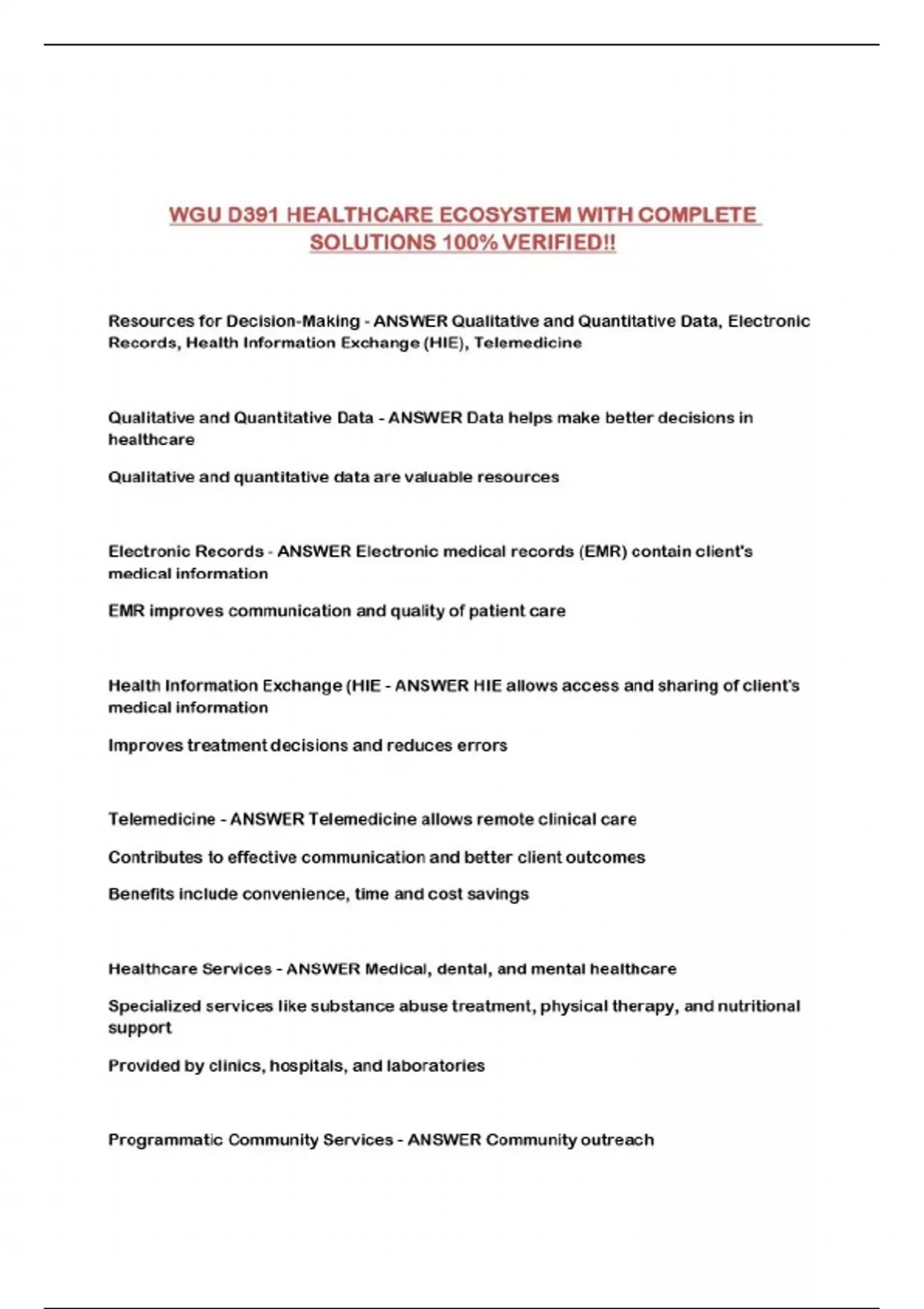 WGU D391 HEALTHCARE ECOSYSTEM WITH COMPLETE SOLUTIONS 100% VERIFIED!!