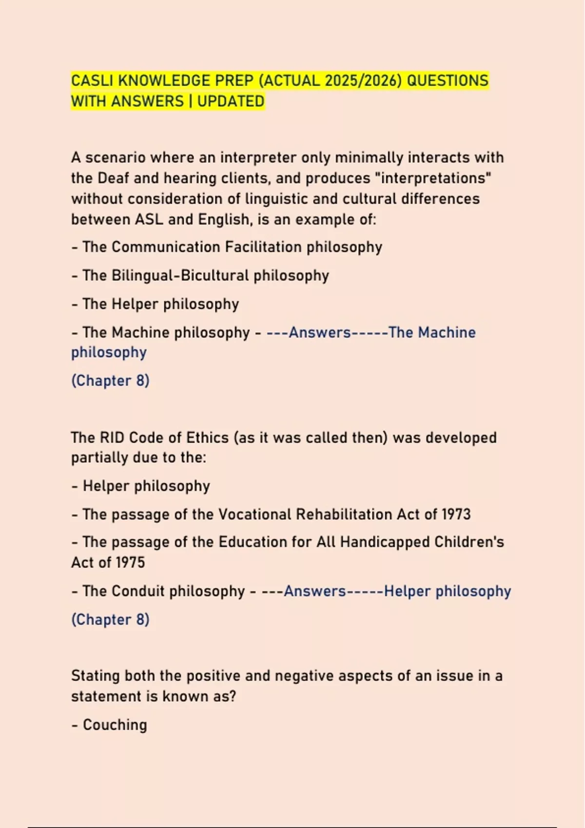 CASLI KNOWLEDGE PREP (ACTUAL 2025/2026) QUESTIONS WITH ANSWERS | UPDATED