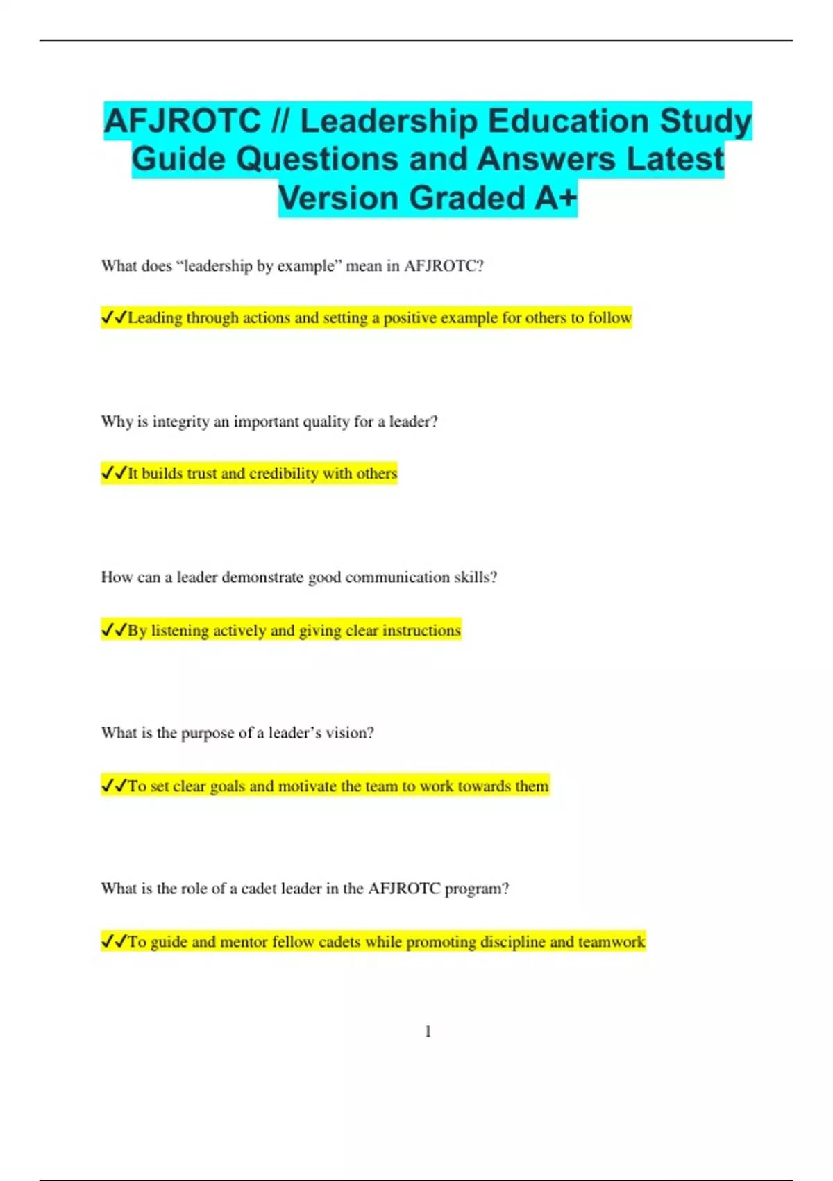 Guide Questions and Answers Latest