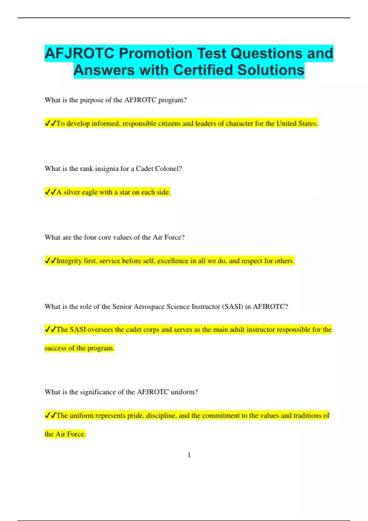 ✔✔The SASI oversees the cadet corps and serves as the main adult instructor responsible for the