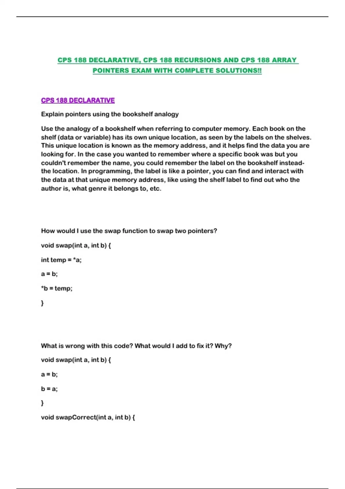 POINTERS EXAM WITH COMPLETE SOLUTIONS!!