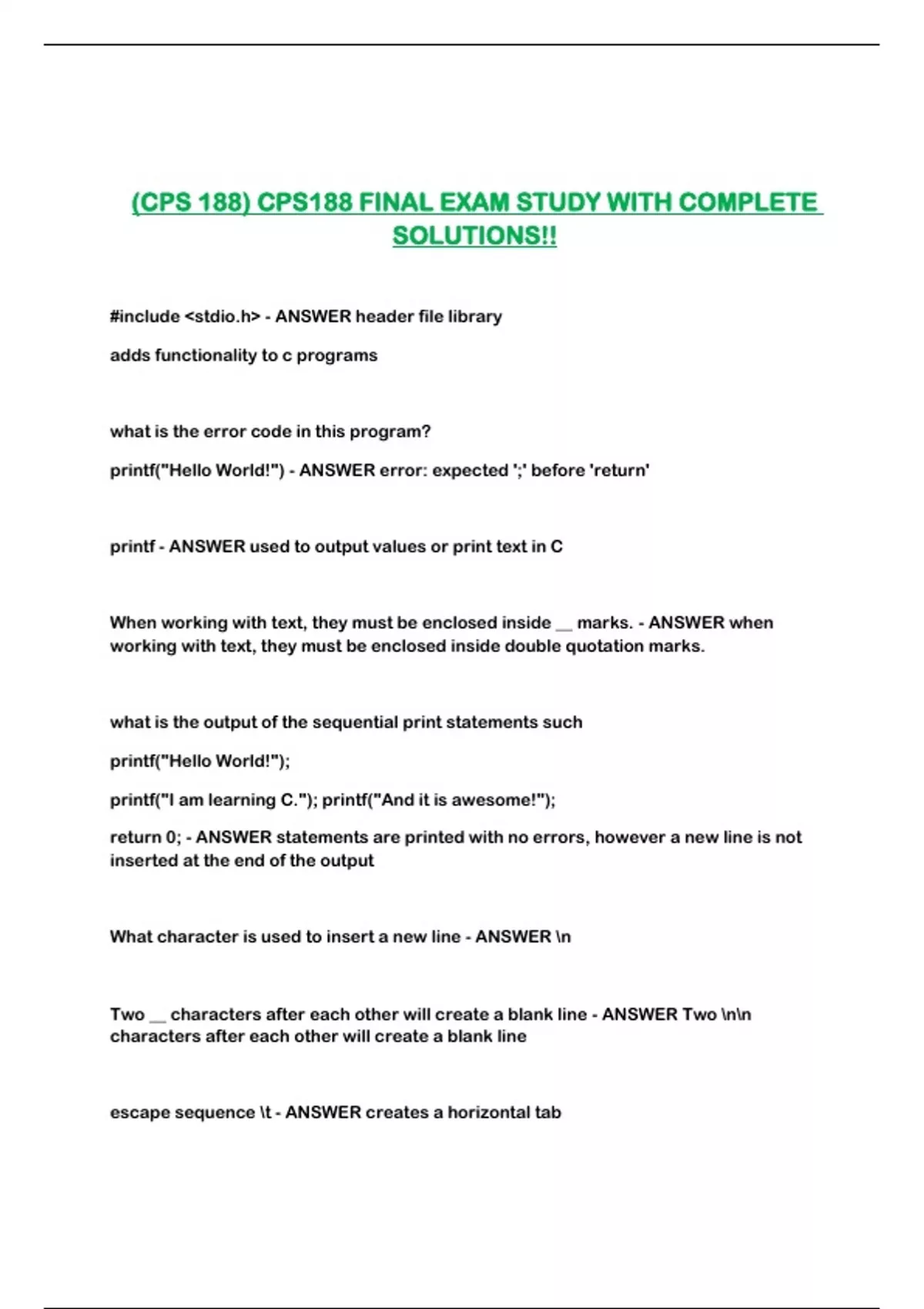 (CPS 188) CPS188 FINAL EXAM STUDY WITH COMPLETE