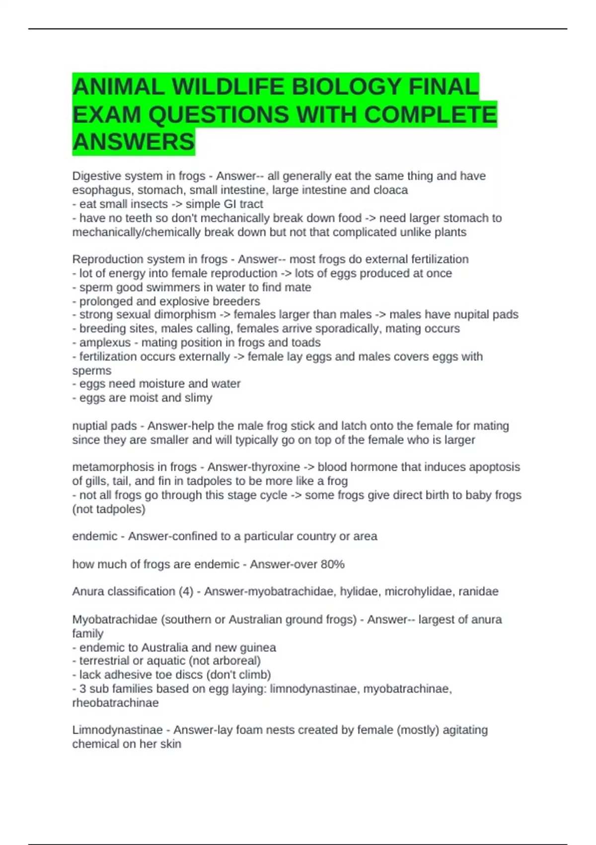 ANIMAL WILDLIFE BIOLOGY FINAL