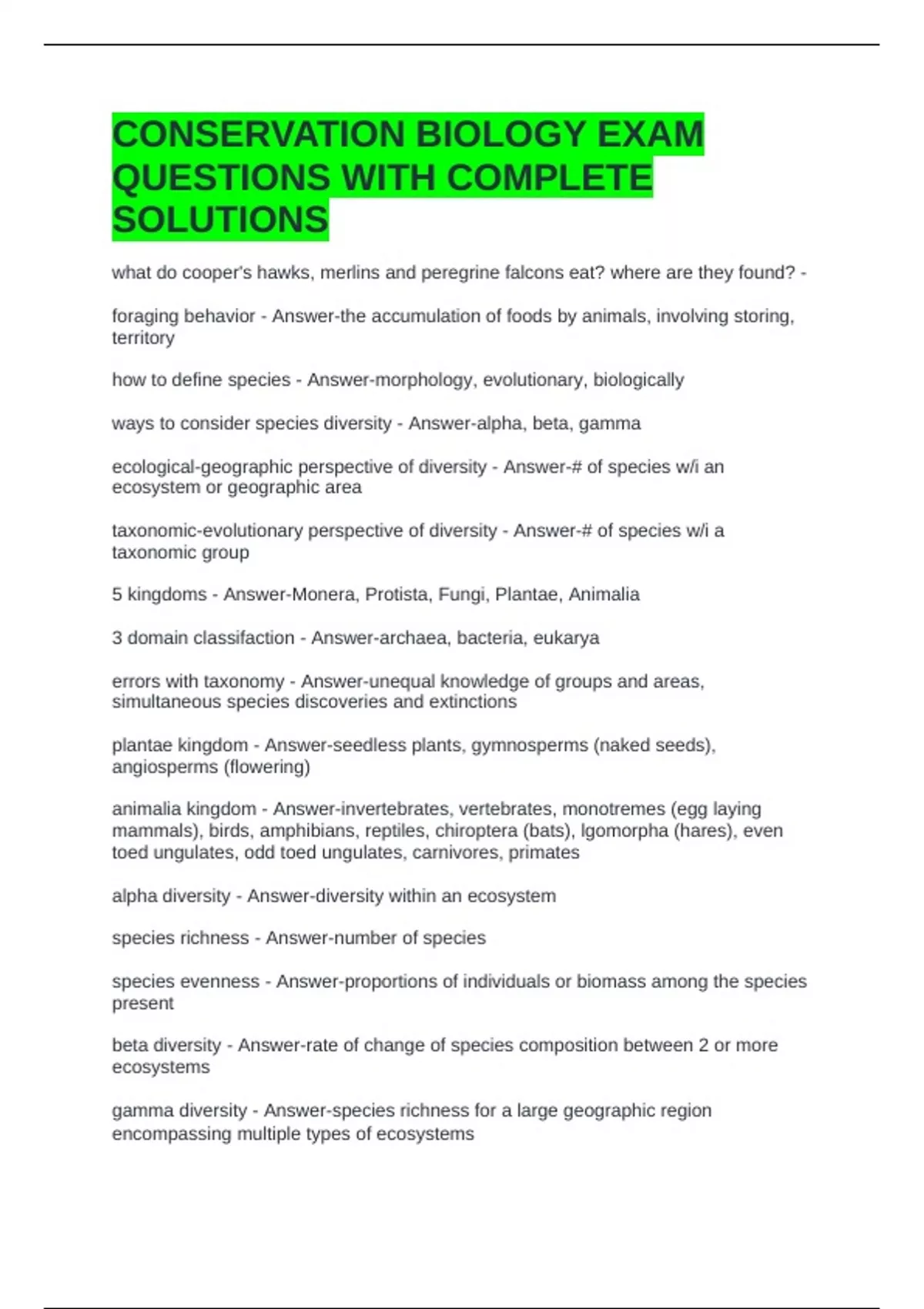 CONSERVATION BIOLOGY EXAM QUESTIONS WITH COMPLETE SOLUTIONS