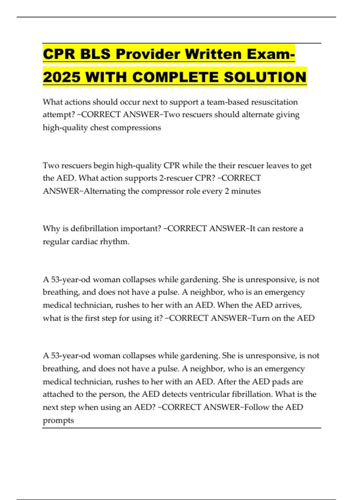 CPR BLS Provider Written Exam-2025 WITH COMPLETE SOLUTION CPR BLS Provider Written Exam-2025 WITH COMPLETE SOLUTION CPR BLS Provider Written Exam-2025 WITH COMPLETE SOLUTION CPR BLS Provider Written Exam-2025 WITH COMPLETE SOLUTION CPR BLS Provider Written Exam-2025 WITH COMPLETE SOLUTION CPR BLS Provider Written Exam-2025 WITH COMPLETE SOLUTION CPR BLS Provider Written Exam-2025 WITH COMPLETE SOLUTION CPR BLS Provider Written Exam-2025 WITH COMPLETE SOLUTION