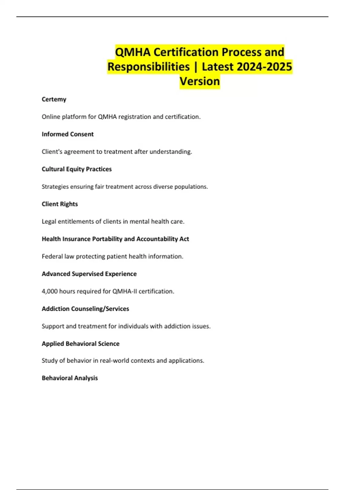 Advanced certification for experienced Qualified Mental Health Associates.
