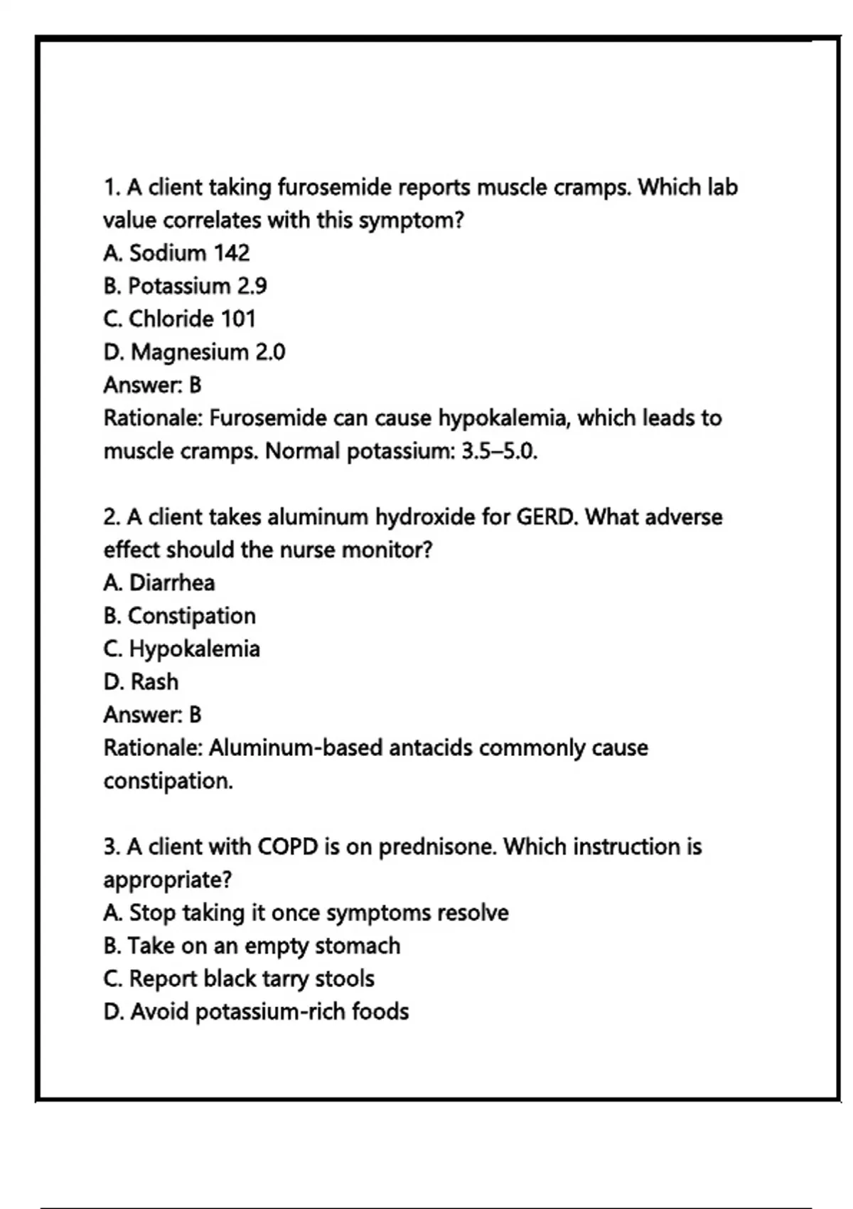 2. A client takes aluminum hydroxide for GERD. What adverse