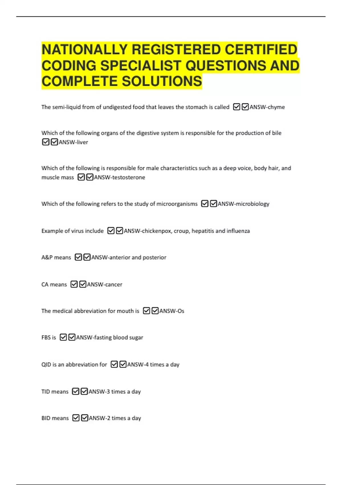 CODING SPECIALIST QUESTIONS AND