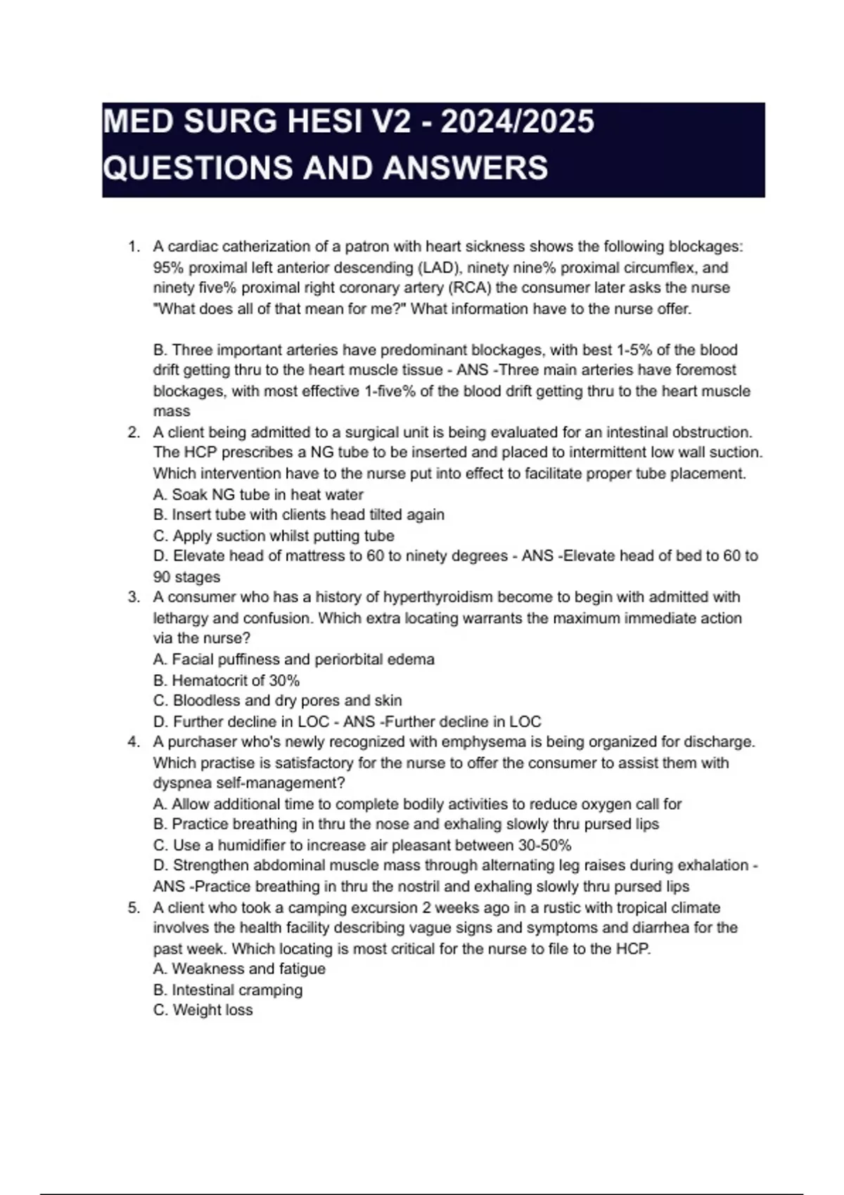 MED SURG HESI V2 - 2024/2025