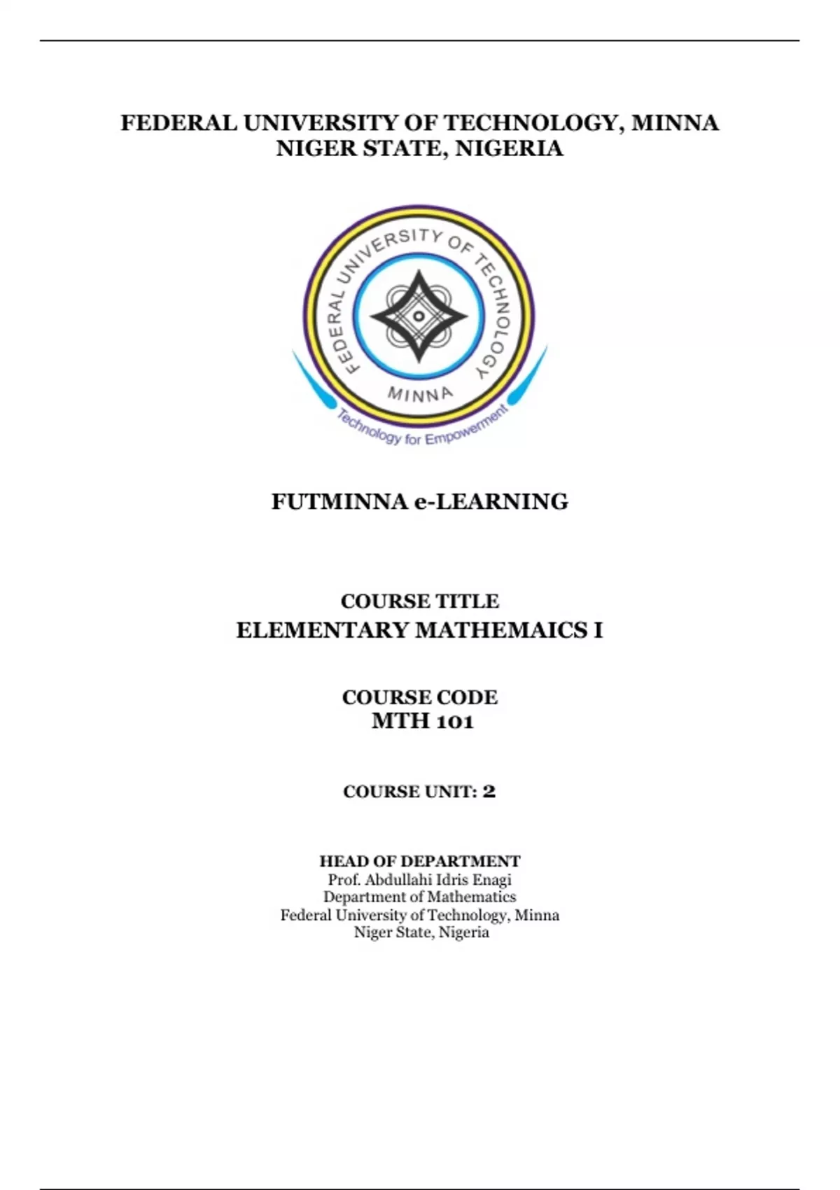 MTH 101: Elementary Mathematics I is a 2- credit unit course for students