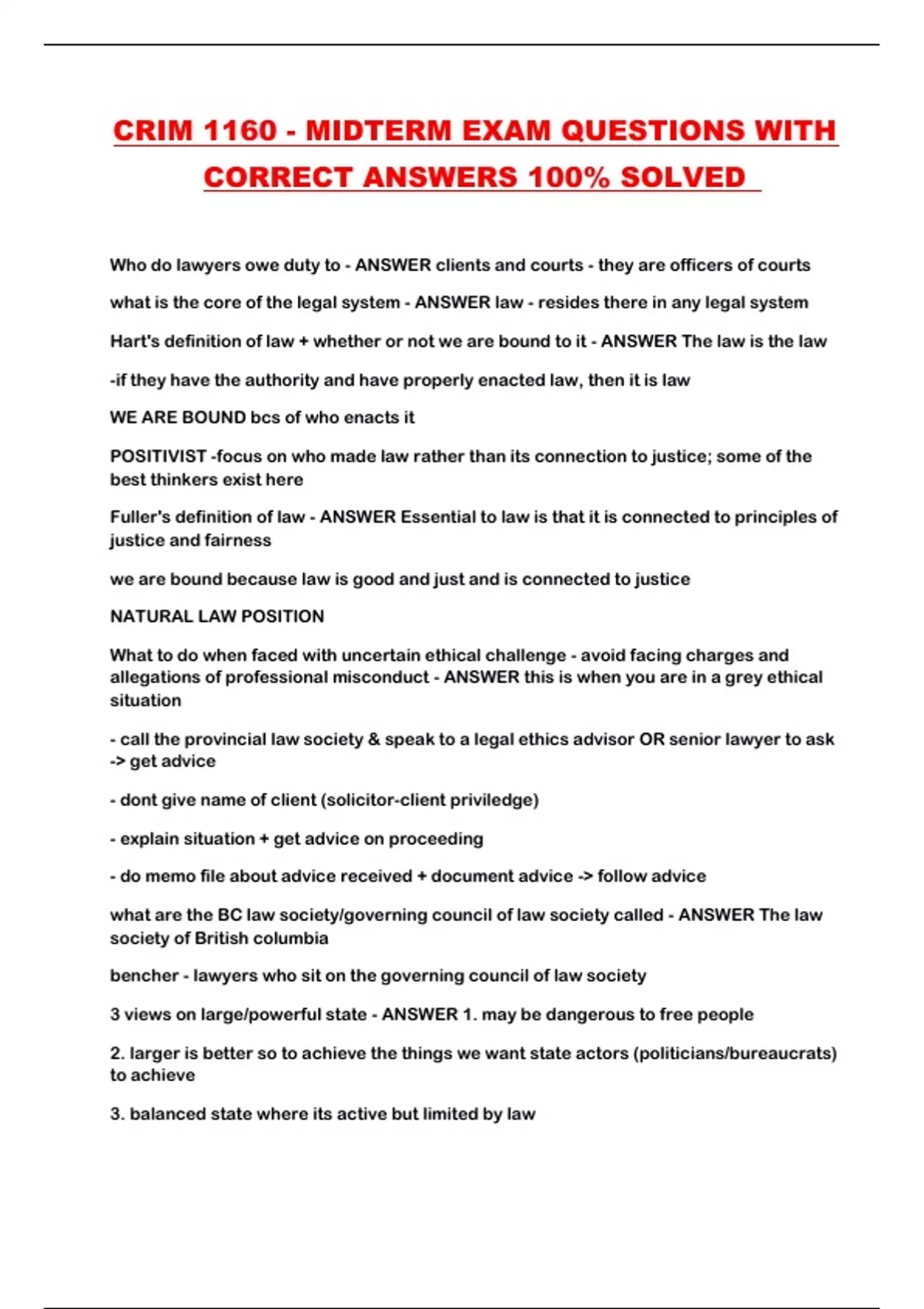 CRIM 1160 - MIDTERM EXAM QUESTIONS WITH