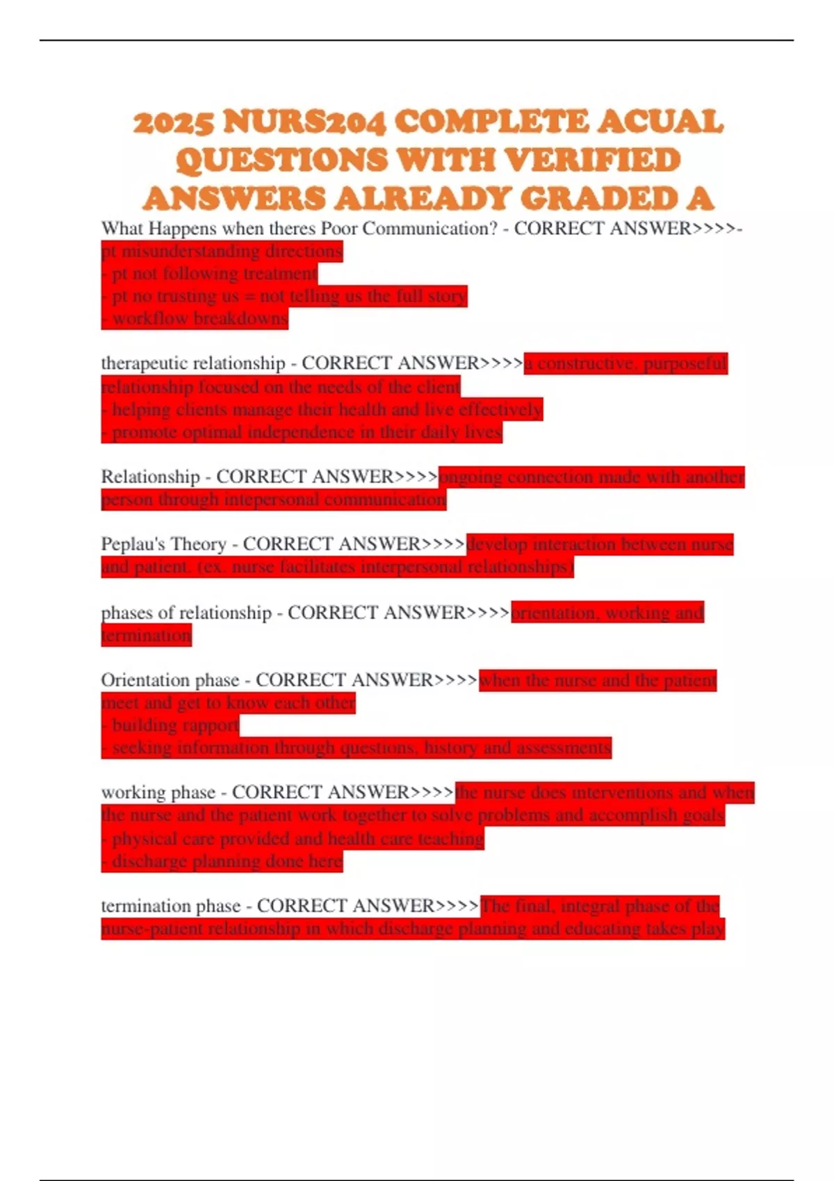 Orientation phase - CORRECT ANSWER>>>>when the nurse and the patient