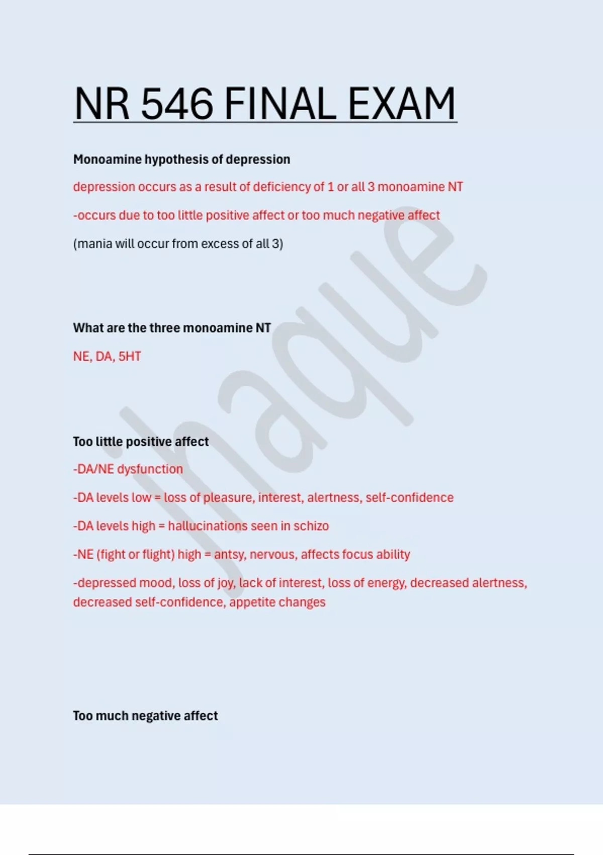 -DA levels low = loss of pleasure, interest, alertness, self-confidence