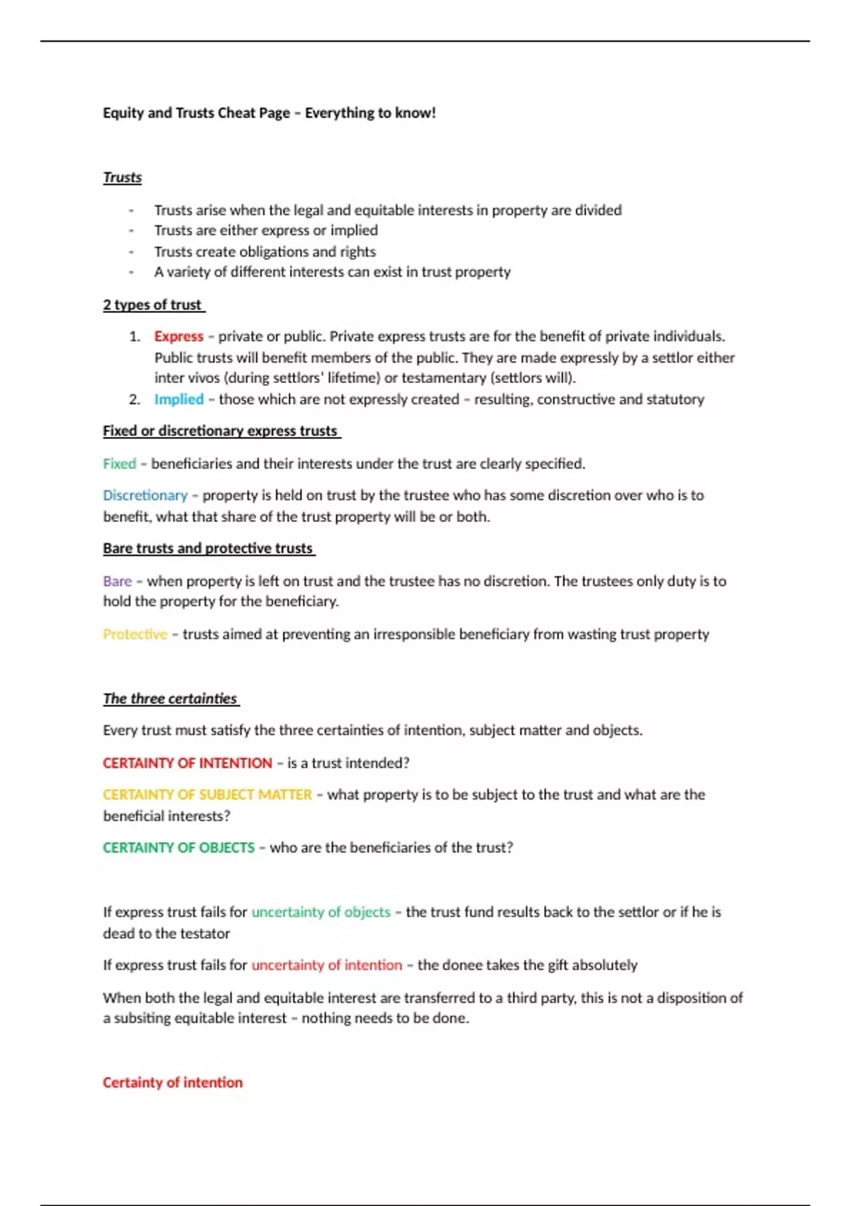 Equity and Trusts Cheat Page – Everything to know!