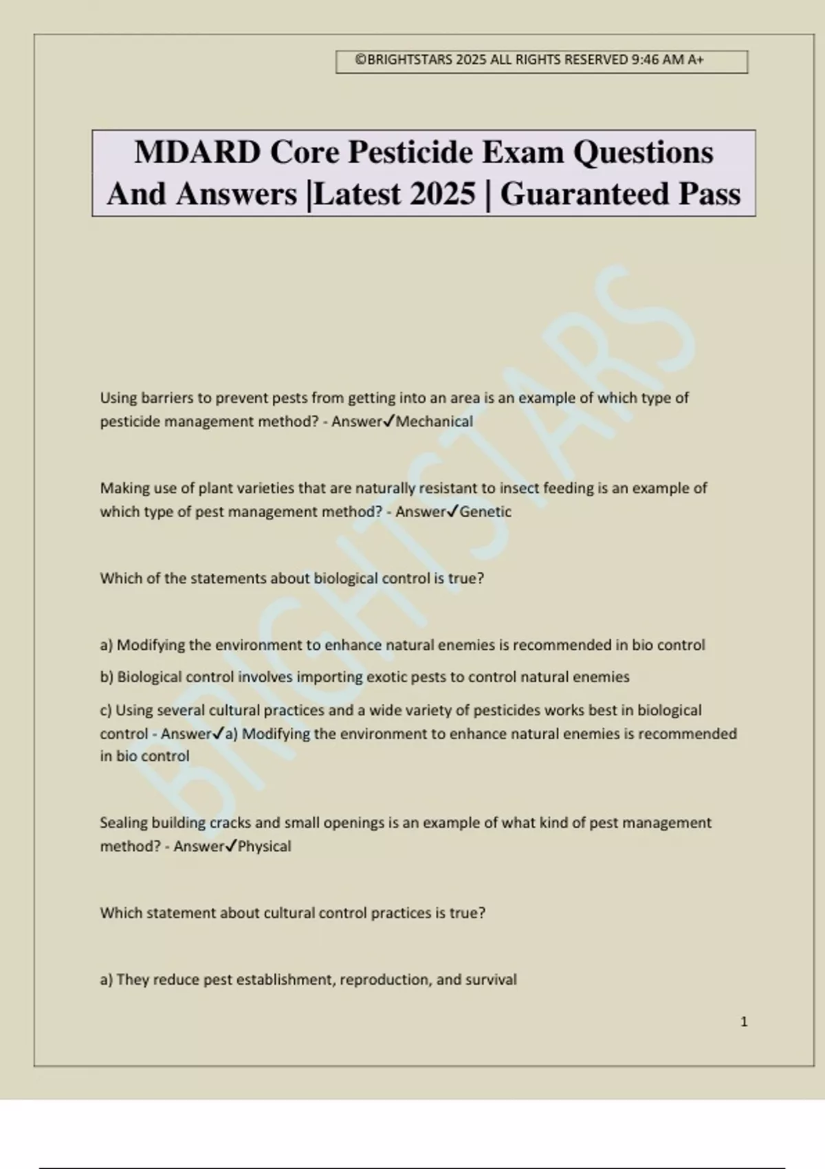 c) Nonchemical methods are short-term solutions to control pests - Answer✔a) The goal is to