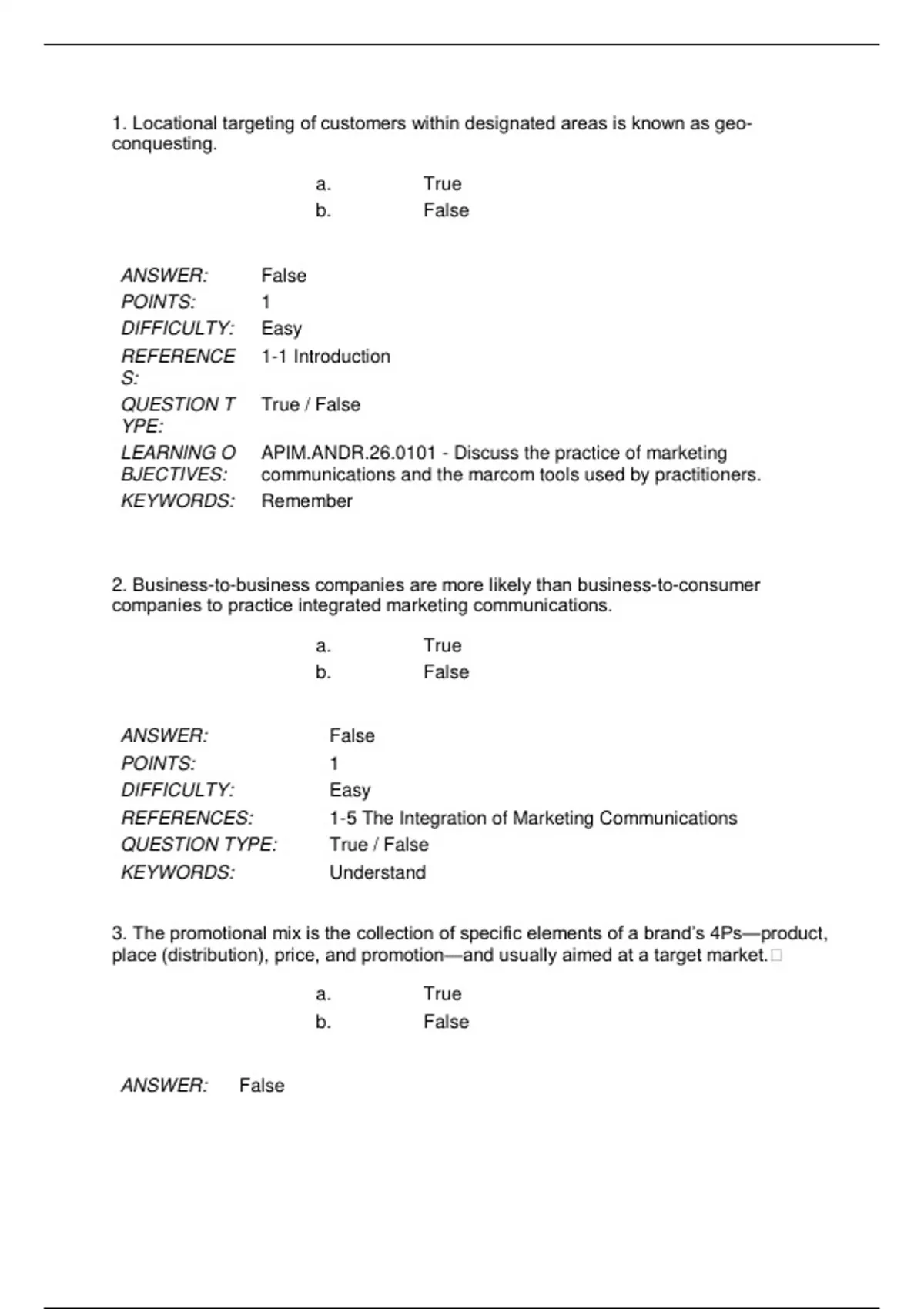 Test Bank/Quizzes: Advertising, Promotion, and other aspects, Andrews, 11e (2025 update)