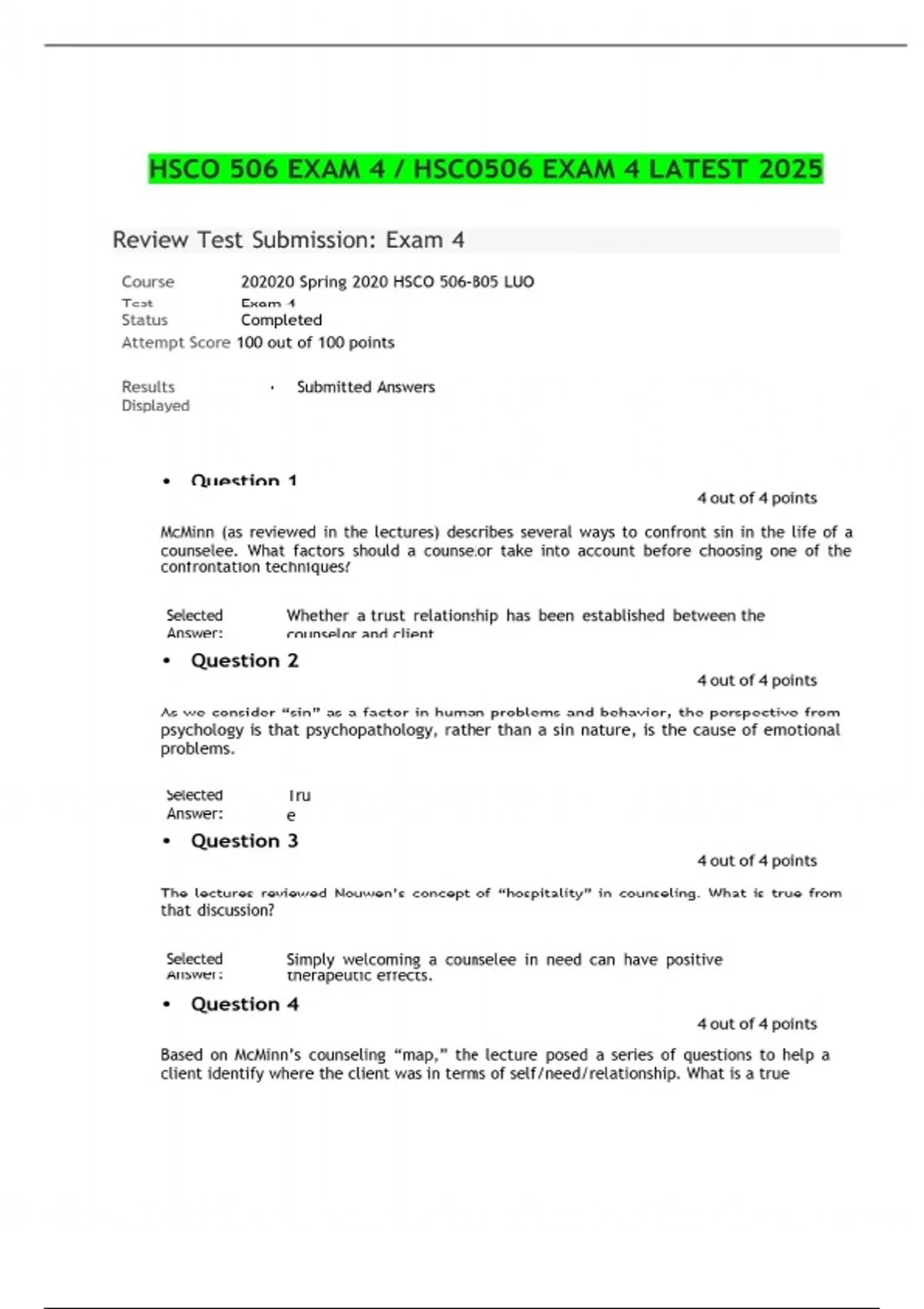 HSCO 506 EXAM 4 / HSCO506 EXAM 4 LATEST 2025
