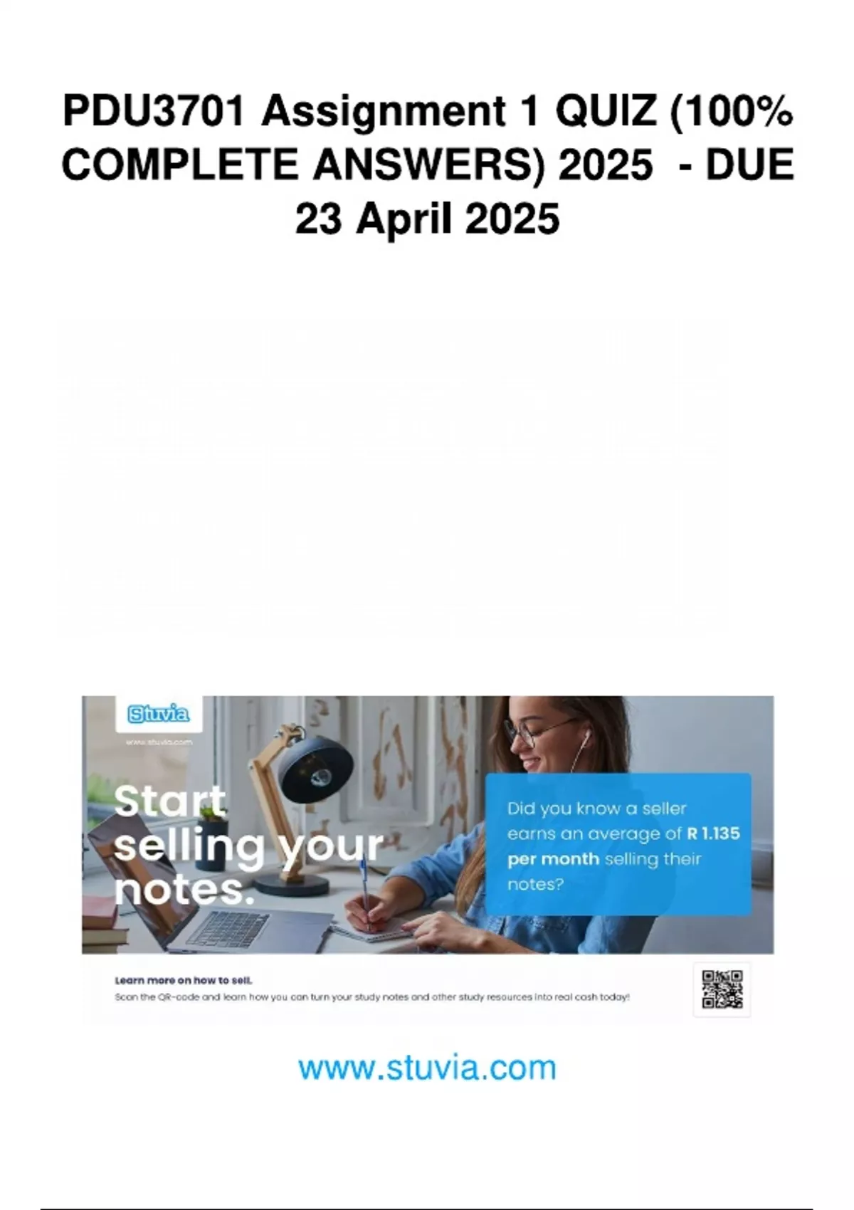 PDU3701 Assignment 1 QUIZ (COMPLETE ANSWERS) 2025 - DUE 23 April 2025.