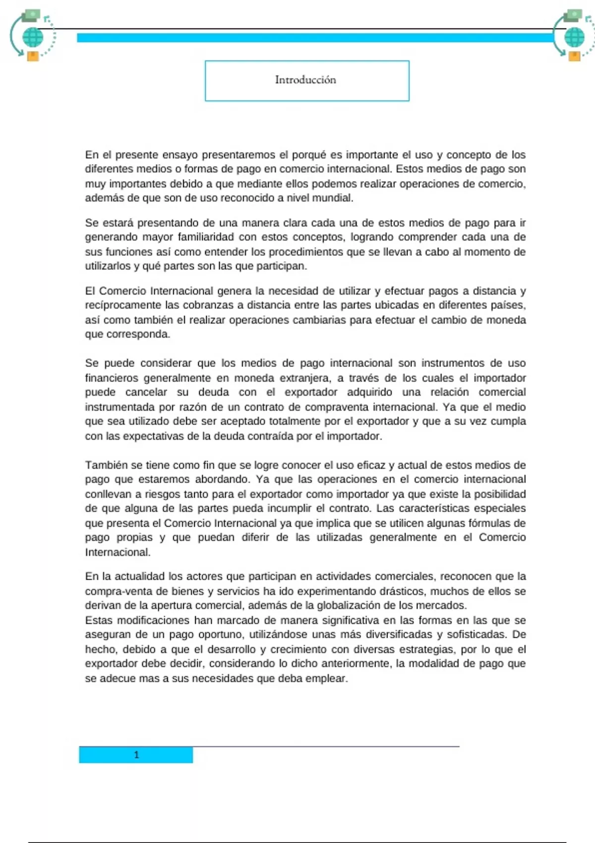 diferentes medios o formas de pago en comercio internacional. Estos medios de pago son