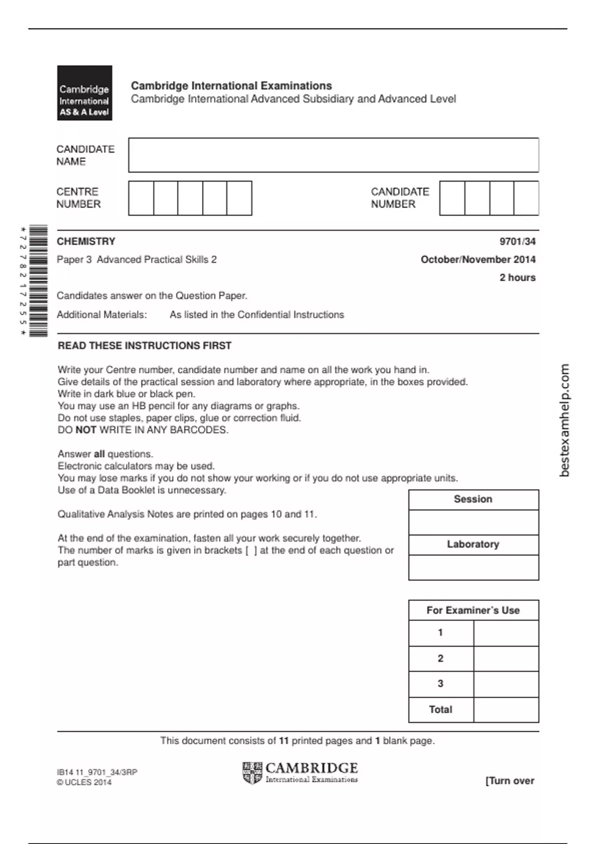 Exam of 12 pages for the course chemistry practical at chemistry practical (9701_w14_qp_34)