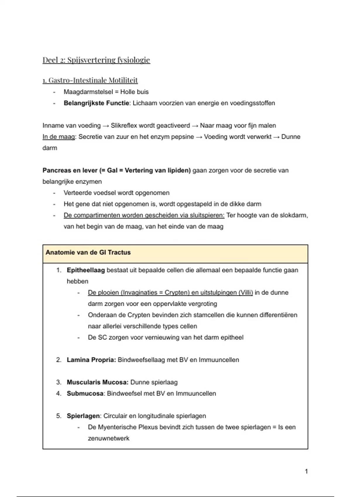 1. Epitheellaag bestaat uit bepaalde cellen die allemaal een bepaalde functie gaan