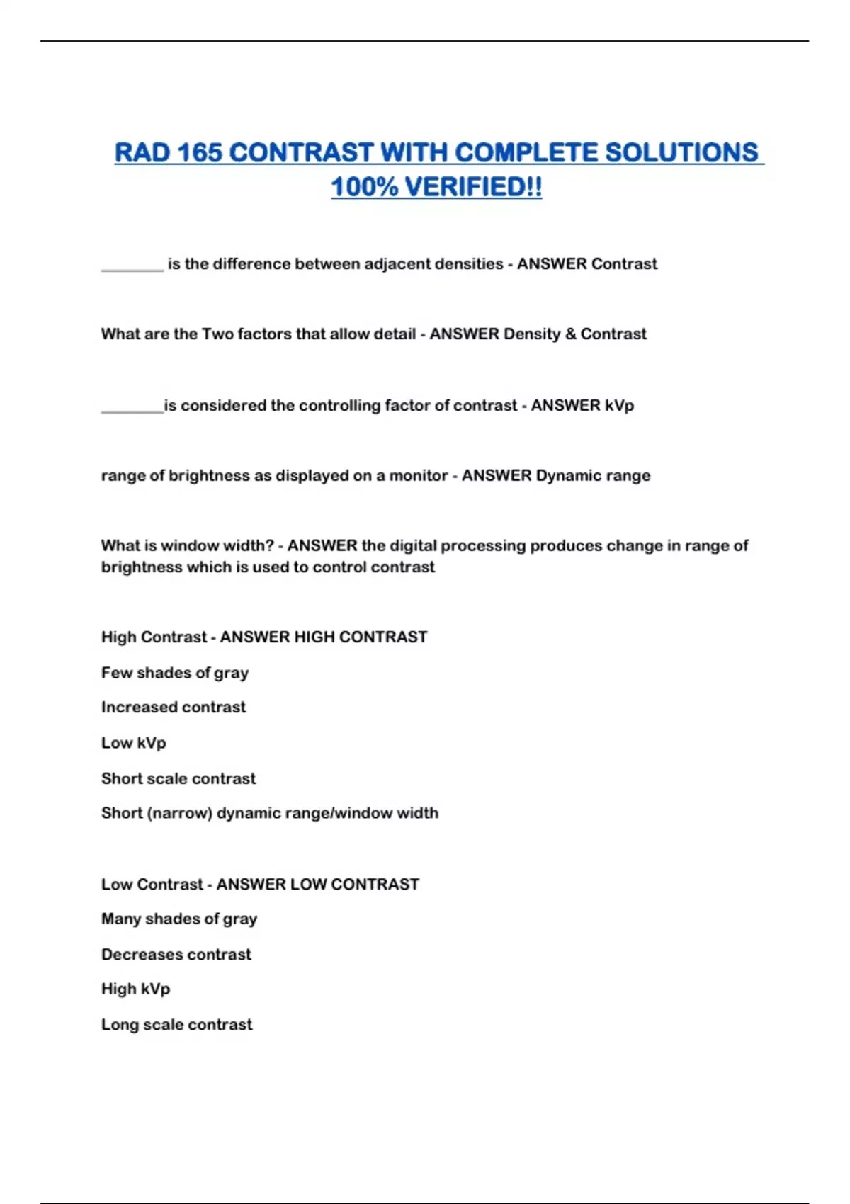 RAD 165 CONTRAST WITH COMPLETE SOLUTIONS