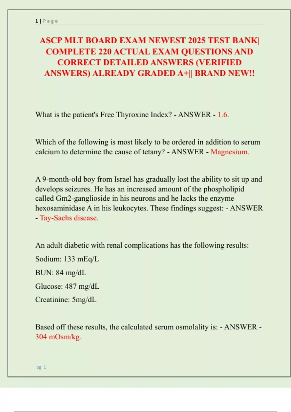 ASCP MLT BOARD EXAM NEWEST 2025 TEST BANK|