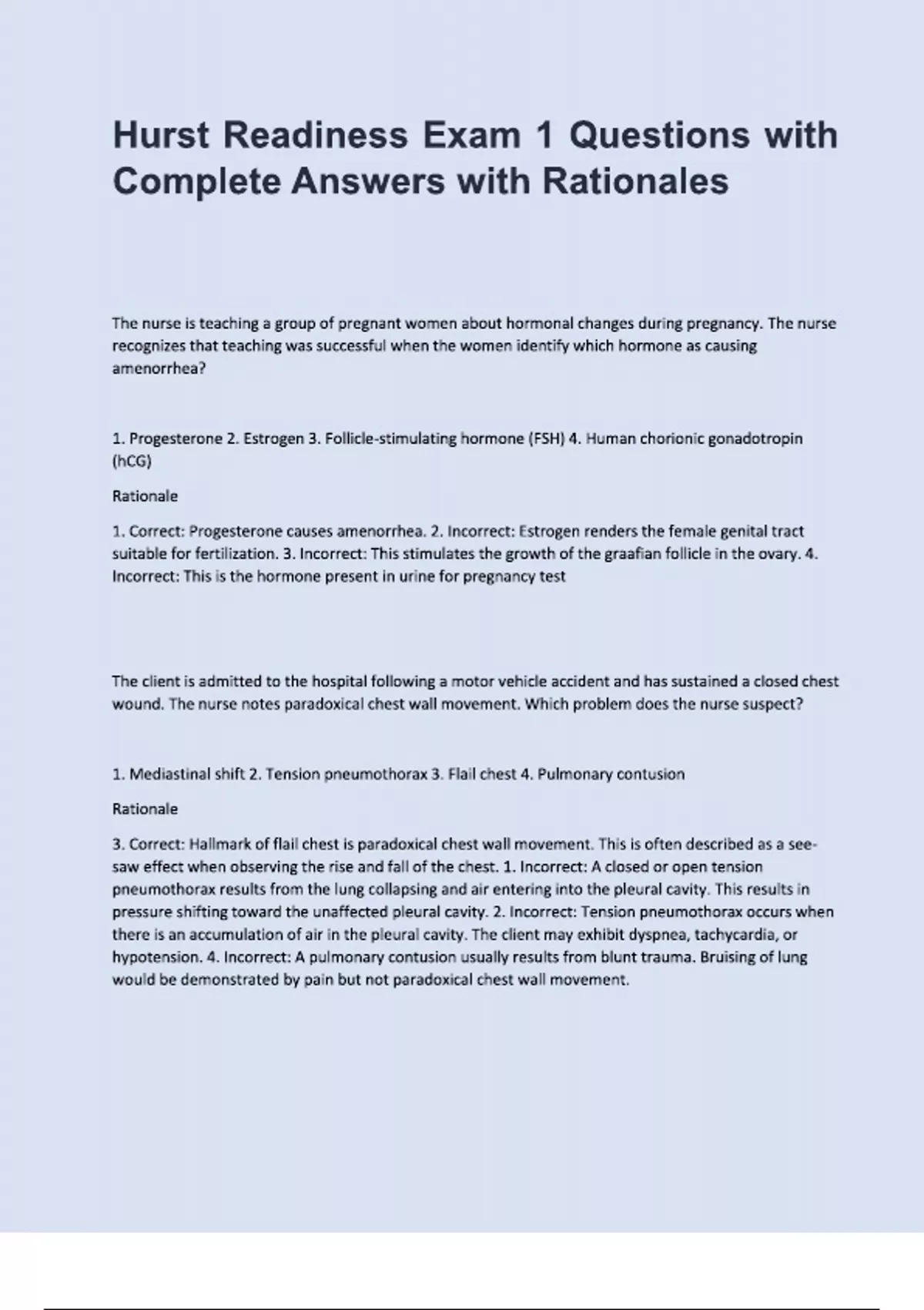 Hurst Readiness Exam 1 Questions with Complete Answers with Rationales.