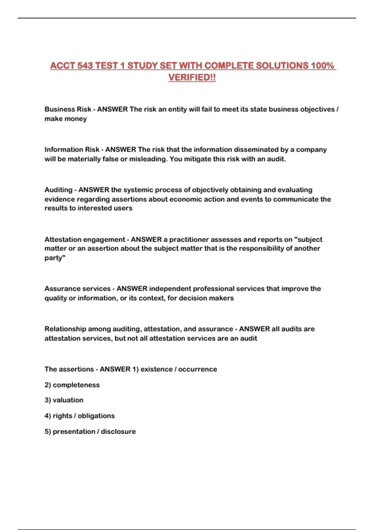 ACCT 543 TEST 1 STUDY SET WITH COMPLETE SOLUTIONS 100%