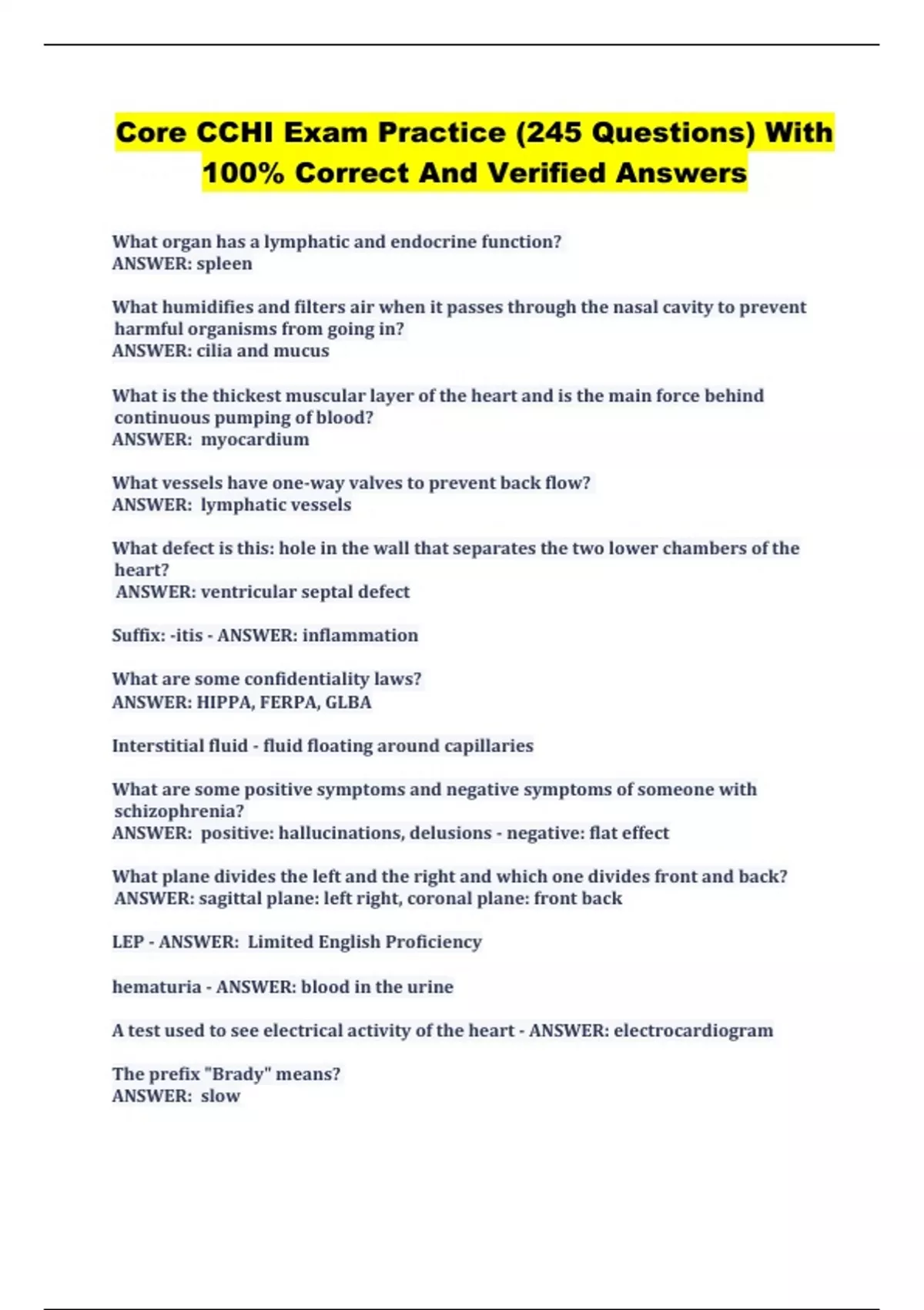 Core CCHI Exam Practice (245 Questions) With 100% Correct And Verified Answers.